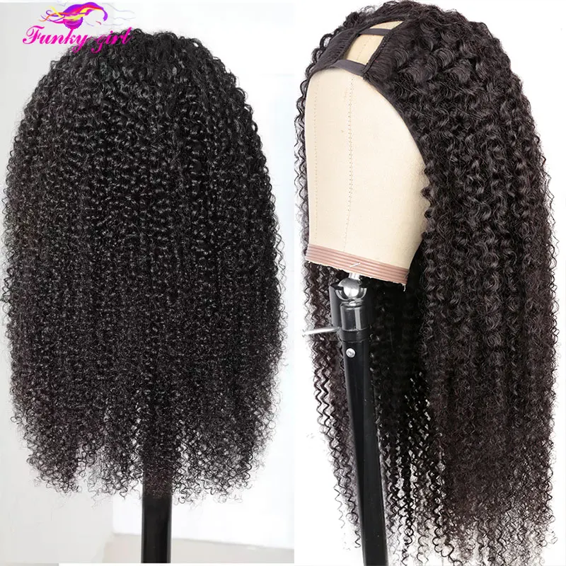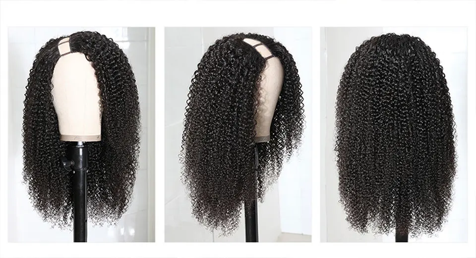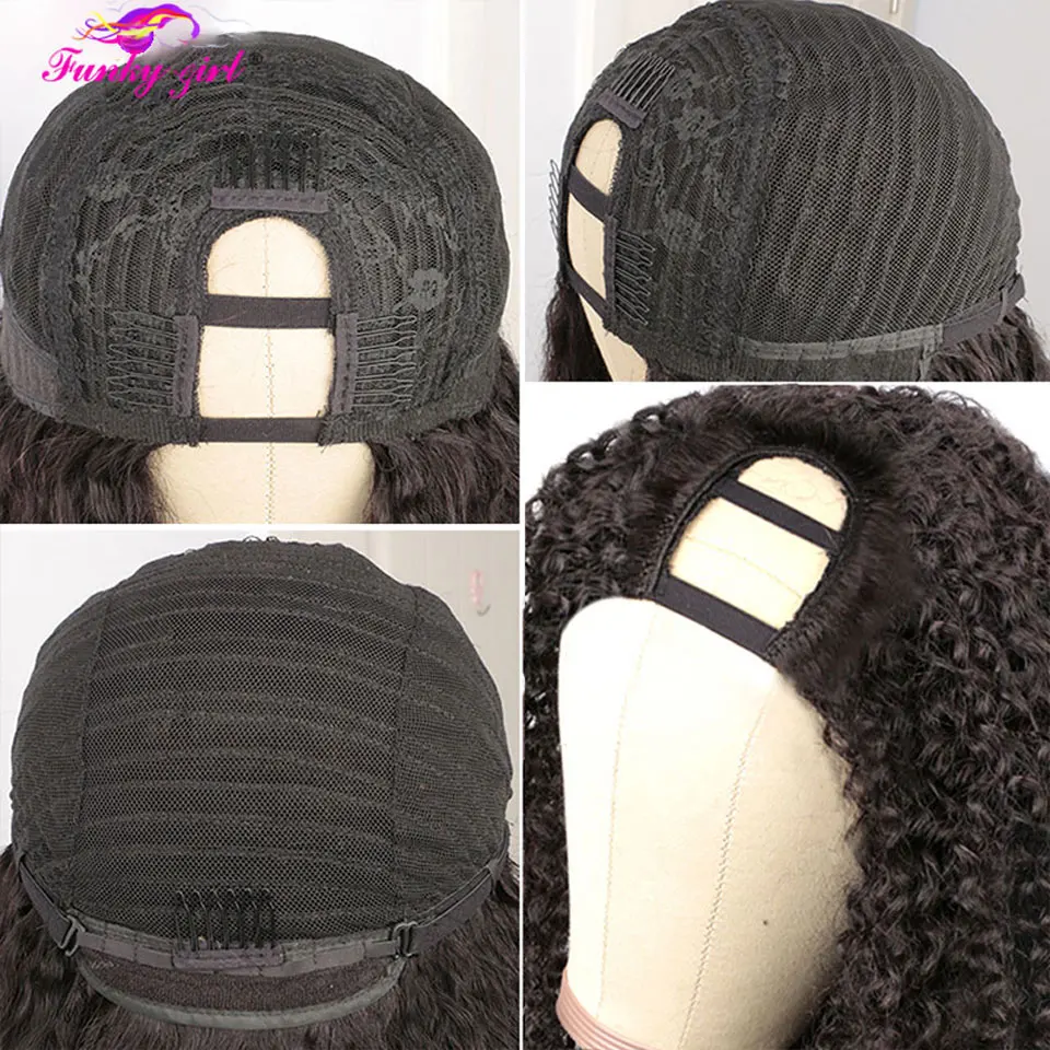 Парик из натуральных кудрявых волос U-образной формы, бразильские волосы Реми 2x4, парик U-образной формы, без шнурка, парик для чернокожих женщин естественного цвета