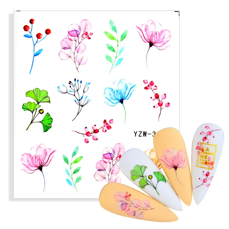 Водная наклейка для ногтей и наклейка, цветок, лист, дерево, зелена...