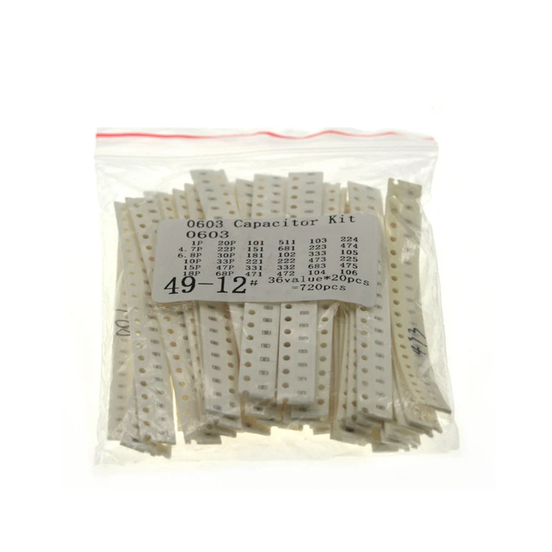 Набор конденсаторов 0306 SMD, в ассортименте, 36 значений x 20 шт. = 720 шт., набор образцов 1PF-10UF