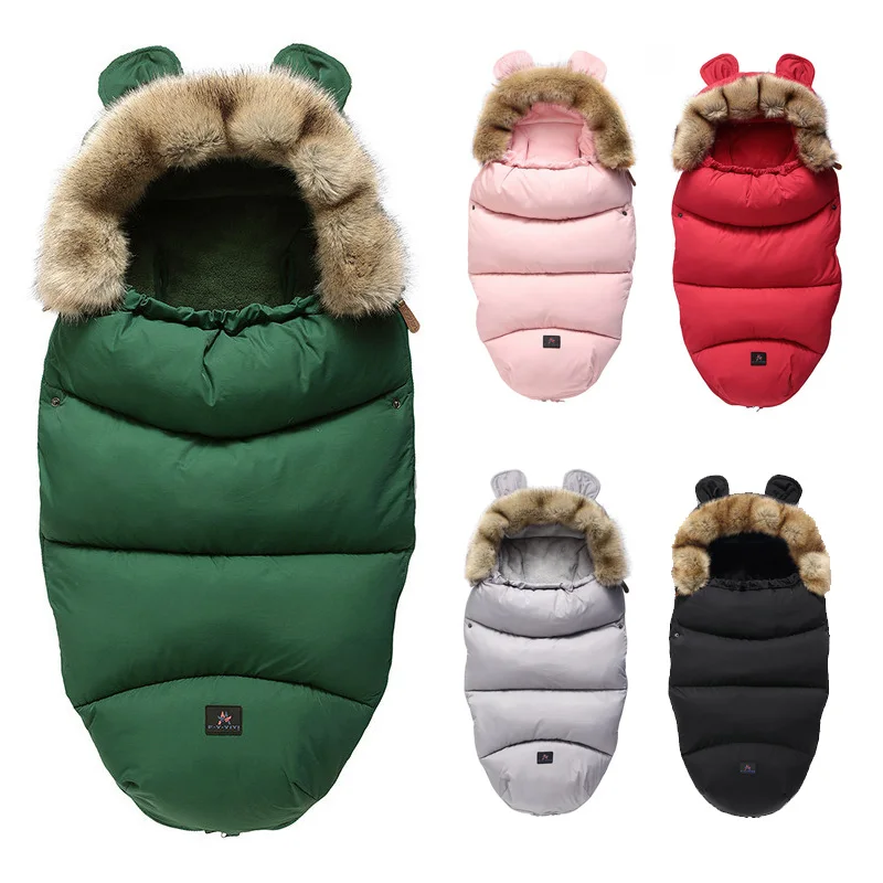 Зимние спальные мешки, конверт для новорожденных, коврик для детской коляски, спальный мешок с капюшоном и милыми ушками, теплые толстые детские коляски