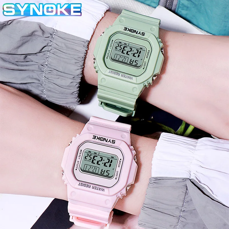 Женские цифровые часы SYNOKE, водонепроницаемые, с электронным цифр...