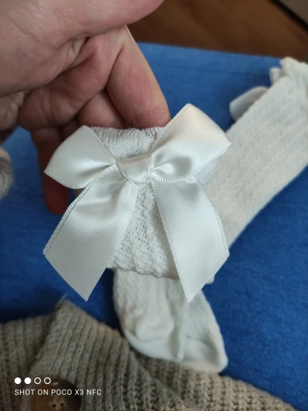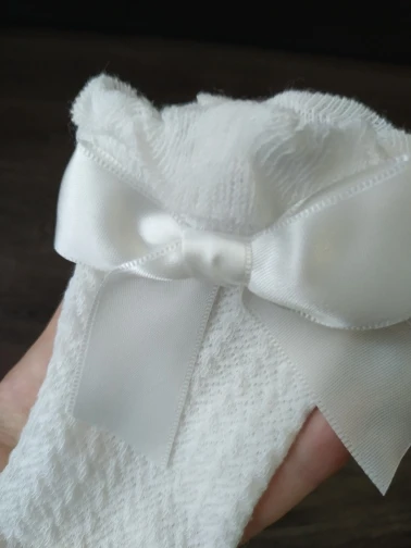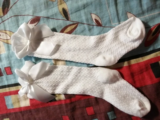 Заказала для дочери белые, чёрные и розовые гольфы. Так же в подарок ещё одни розовые. Доставка очень долгая до Кургана получилась, но мне это было не важно, так как заказывала к Новому Году... Белые, чёрные и одни розовые пришли в идеальном состоянии. Качество прекрасное. Выглядят очень красиво. Но! Вторые розовые пришли с замаранным бантиком (не отстиралось). Пришлось хорошие подарить, а испорченные оставить. Не приятно