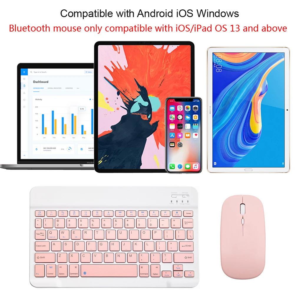 1: Включите переключатель вкл/выкл.2: нажмите «подключить», Индикатор логотипа Bluetooth начнет мигать.3: Включите переключатель Bluetooth на устройстве, таком как планшет/смартфон, найдите устройство Bluetooth, имя Bluetooth клавиатуры по умолчанию: клавиатура Bluetooth 3,0.4: Нажмите клавиатуру Bluetooth 3,0 на планшете/смартфоне, нажмите клавишу Enter для подключения.Примечание: клавиатуру нельзя подключать к двум устройствам одновременно. Поэтому, если вы хотите заменить другое устройство, необходимо сначала отключить соединение сопряжения оригинального устройства.2. Двухрежимная мышь: соединение Bluetooth + 2,4 ГГцПримечание: вам необходимо обновить систему вашего ipad и iphone до iOS 13 и выше. А затем включите «Вспомогательное касание»: настройки открытия> доступность> касание> вспомогательное касание.1. Метод подключения мыши Bluetooth:1: Включите переключатель вкл/выкл, чтобы переключиться на Bluetooth.2: Включите переключатель Bluetooth на устройстве, таком как планшет/смартфон, а затем найдите мышь Bluetooth.3: Щелкните мышью Bluetooth на планшете/смартфоне, чтобы подключиться к устройству.2. Способ подключения мыши 2,4 ГГц:1: Включите переключатель вкл/выкл, чтобы переключиться на 2,4 ГГц.2: просто Подключите USB-приемник к USB-порту компьютера, и вы можете начать его использовать.Примечание: мышь не может быть подключена к двум устройствам одновременно. Поэтому, если вы хотите заменить другое устройство, необходимо сначала отключить соединение сопряжения оригинального устройства.Характеристики Товара:Раскладка клавиатуры: стандарт СШАВерсия клавиатуры Bluetooth: Bluetooth 3,0Кнопки клавиатуры: 78 клавишРазмер клавиатуры: 25x15x0,6 см 【 Размер: 9,84x5,9x0,24 дюйма 】Вес клавиатуры: 180 г 【вес: 6,35 унций 】Кнопки мыши: 4 клавишиРазмер мыши: 11x5,8x2,7 см 【 Размер: 4,33x2,3x1,04 дюйма 】Вес клавиатуры: 60 г 【вес: 2,12 унций 】Рабочий диапазон: до 10 метровМатериал: АБС-пластик + алюминиевый сплавИнтерфейс зарядки: Micro USBСовместимость с ОС: Система iOS Android WindowsГорячие клавиши: функциональная клавиша Fn +, нажмите Fn и синие клавиши на клавиатуреШирокая совместимость: совместим с Apple iPhone iPad Android tablet phone smartphone, Windows tablet smartphone. 【Примечание: клавиатуру невозможно подключить к устройству через адаптер Bluetooth. 】Совместим с Apple iPhone, такими как iPhone 12 Pro Max mini, iPhone SE 2020, iPhone 11 Pro Max, iPhone X XR XS Max, iPhone 7/8 Plus, iPhone 6/6s Plus и т. д.Совместим с Apple iPad, такими как iPad Pro 12,9/11 дюймов, iPad Pro 10,5/9,7 дюймов, iPad Air 2/ 3 2019/ 4 2020, iPad mini 2/ 3/ 4/ 5 2019, новый iPad 2020/ iPad 2019/ iPad 2018 и т. Д.Совместимость со смартфонами с планшетами Android, такими как планшеты Samsung Galaxy Tab S/A, Samsung Galaxy A S Note LG Lenovo и т. Д.Обратите внимание:★★★Очень-очень важно★★★Если вы не будете использовать их в течение более 10 минут, они автоматически войдут в спящее состояние для экономии энергии. Если вы хотите продолжать их использовать, просто нажмите любую клавишу, чтобы разбудить их.Посылка:1 клавиатура Bluetooth1 мышь Bluetooth1 * USB кабельЕсли у вас есть какие-либо вопросы, пожалуйста, свяжитесь с нами, мы надеемся предоставить вам хорошие продукты и хорошее обслуживание, пока вы не будете удовлетворены.