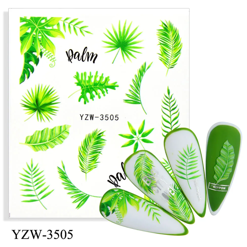 Освежающие водные цветные листья, наклейка для ногтей, водная переводка кактус, лист, Бабочка, морские водоросли, торт, слайдер для дизайна ногтей