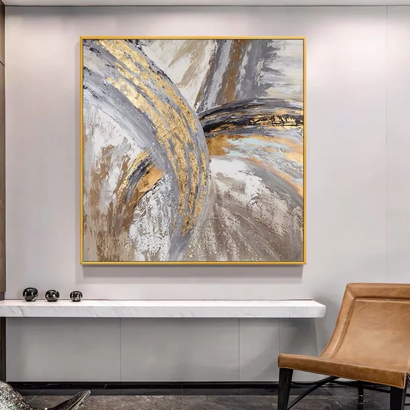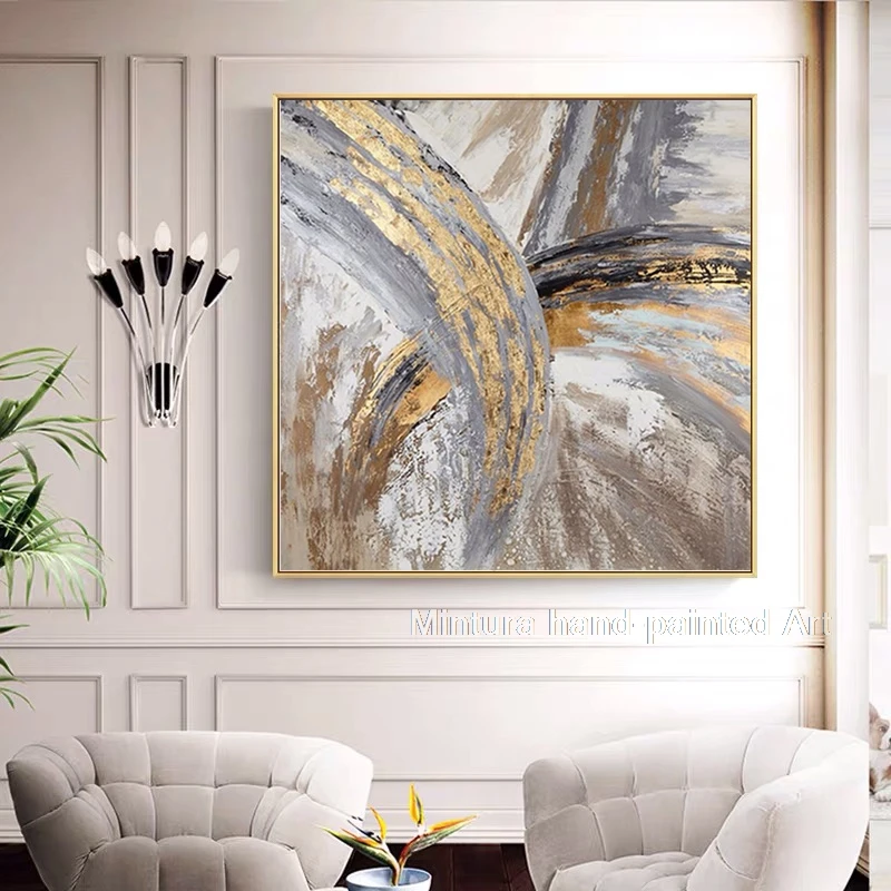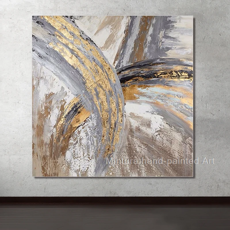 Mintura Ручная роспись Абстрактная серая Золотая масляная живопись на холсте Современная Настенная живопись для гостиной домашний декор искусство для ресторана