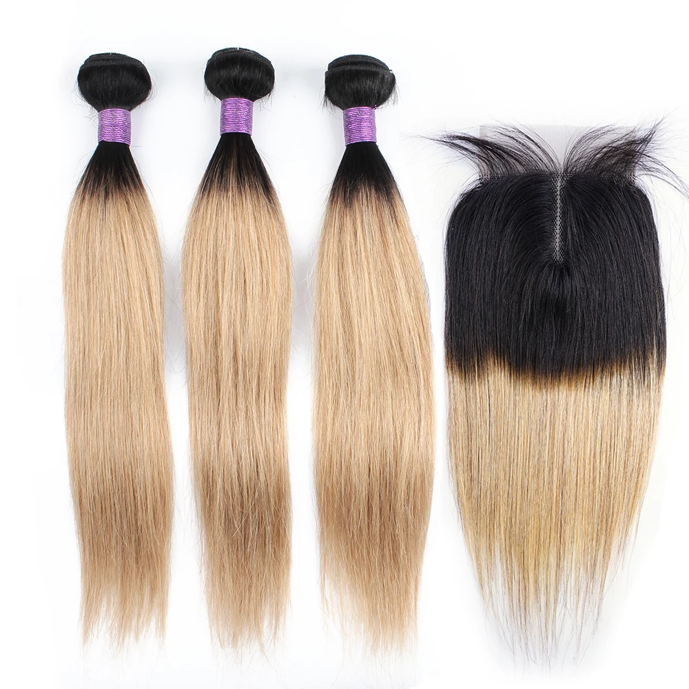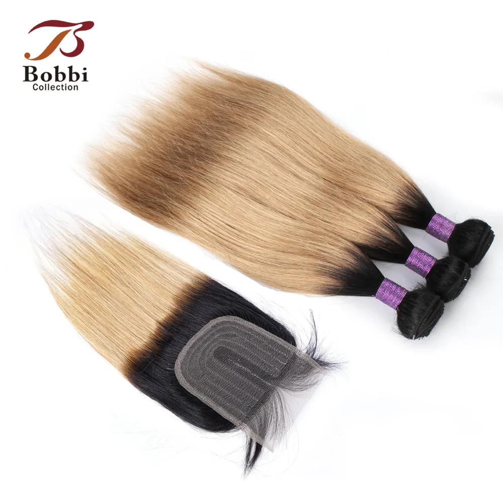 3 пряди с кружевной застежкой средняя часть 200 гкомпл. прямые волосы волнистые 1B 27 Омбре медовая блондинка Реми натуральные волосы Bobbi коллекция