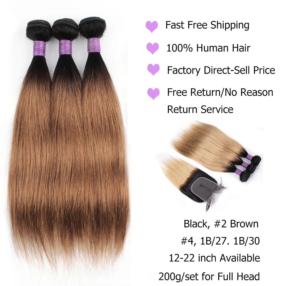 100% человеческие волосы, 200 г/компл., 1 комплект для 1, 12-22 дюймов доступны, 1B 30 эффектом деграде (переход от темного к коричневый рыжий