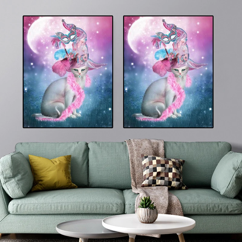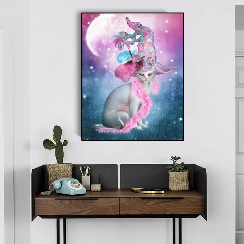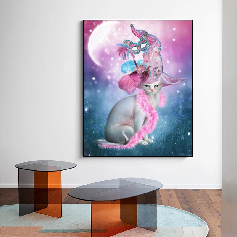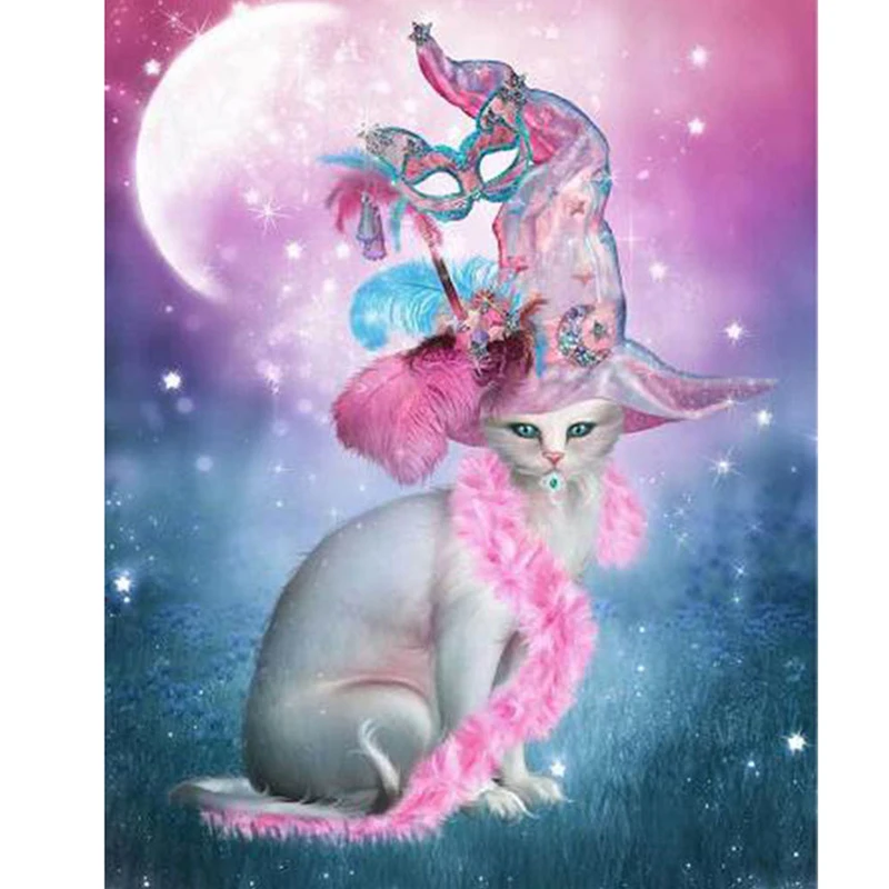 Набор для вышивки крестиком SenyuArt 5D, Алмазная мозаика сделай сам, круглая квадратная вышивка, Волшебная Шляпа, кот, домашний декор