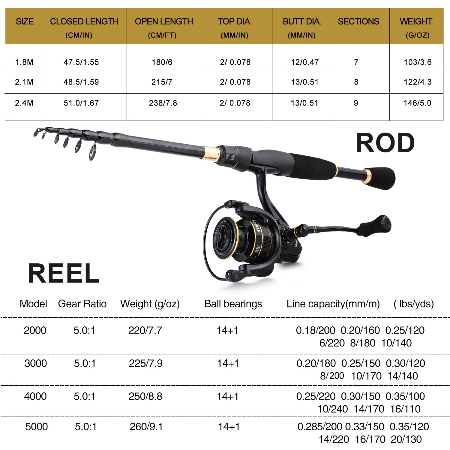 Закрытый Длина: 47,5 см/1.55ft 48,5 см/1.59ft 51cm1.67ft Вес: 103g/3,6 oz 122g/4,3 oz 146g/5oz Рыболовная катушка
