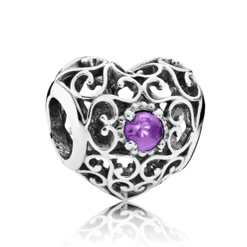 Новинка, фиолетовое сердце, Бабочка, замок, сверкающие бусины-шармы...