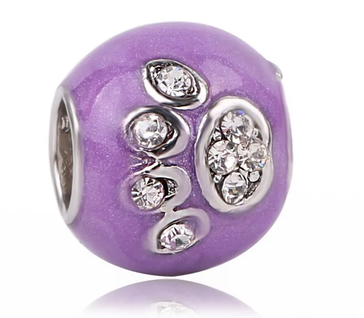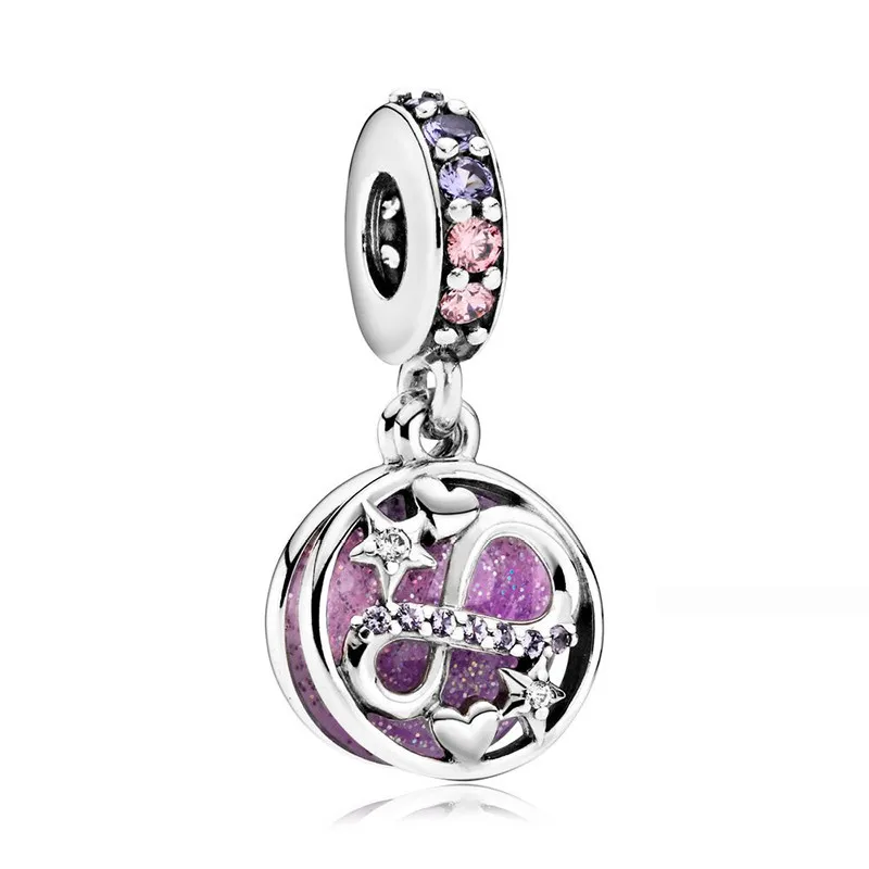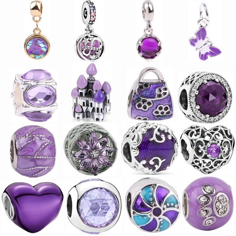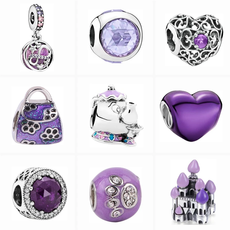 Браслеты-шармы Pandora женские, ювелирные украшения для девочек, фиолетовое сердце, Бабочка, замок, сверкающие циркониевые бусины-шармы, оригинал