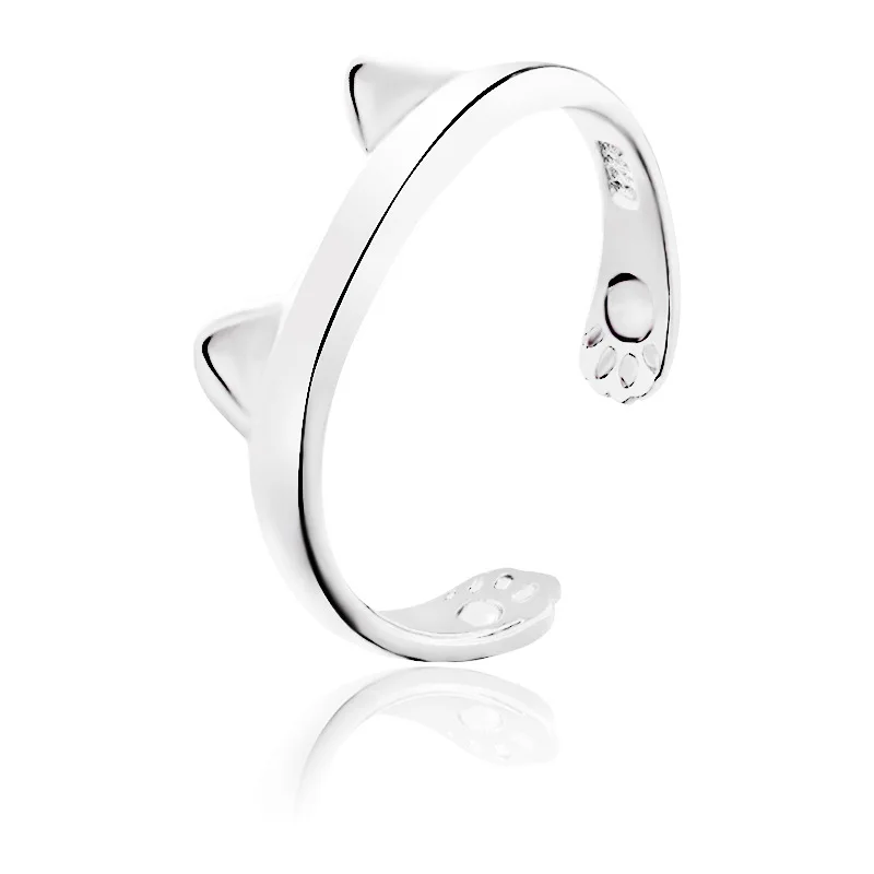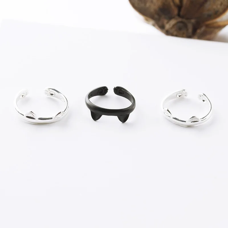 Модный прекрасный кошачьими ушками кольцо симпатичное животное печать ноги открытые Регулируемые кольца для женщин и девочек; Цвет серебристый, черный Цвет Бохо Anel Стиль