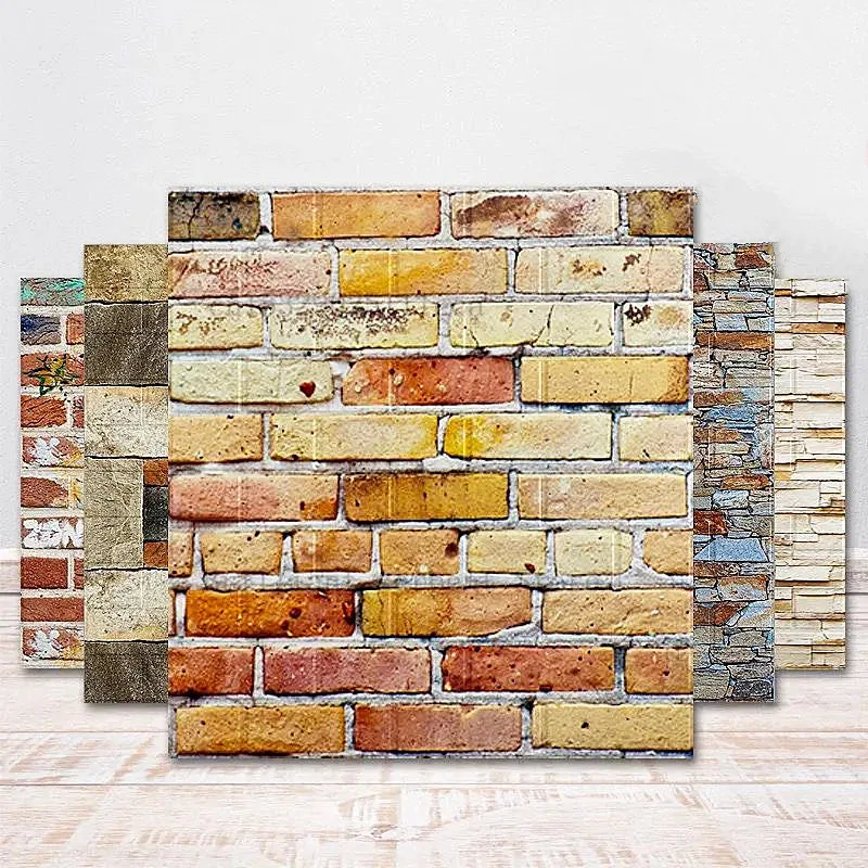 Домашний декор, 3D наклейки на стену из ПЭ под дерево, s-образная бумага, кирпич, камень, настенная бумага, деревенский эффект, самоклеящиеся наклейки для домашнего декора