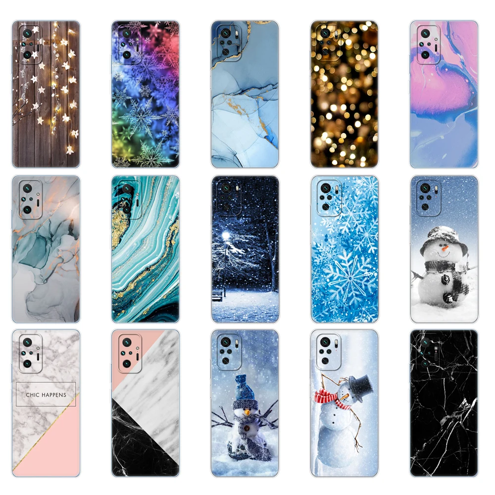 Чехол для Xiaomi Redmi Note 10 10 S 4G 5G, силиконовый чехол для Redmi Note 10 Pro Global Note10 S, с мраморной снежинкой, зима, Рождество