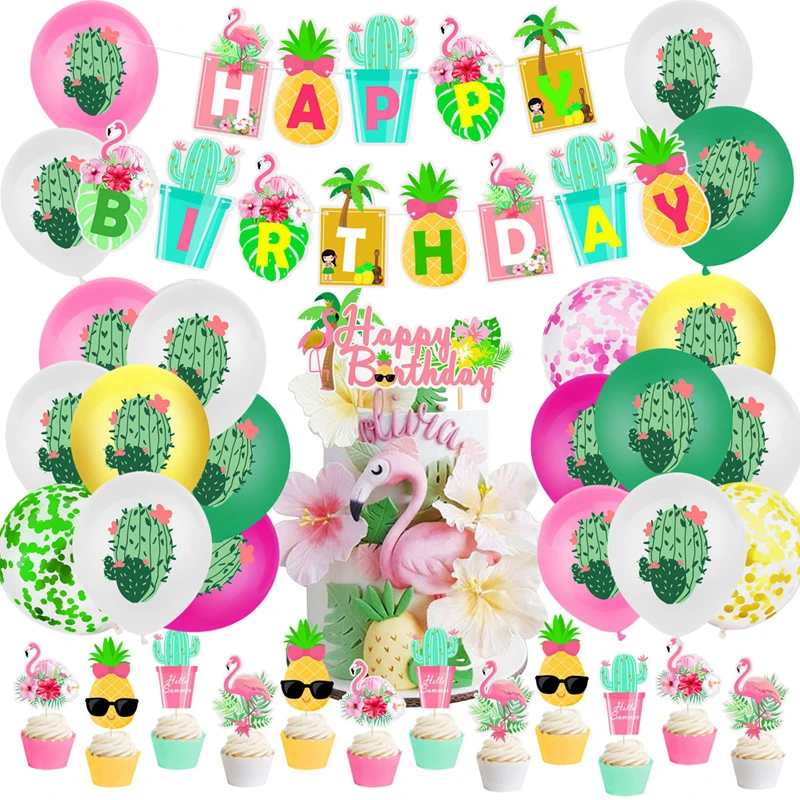 Гавайи вечерние украшения Ананас воздушные шары с днем рождения баннер Гавайская вечерние поставки летние Тропические Платья Фламинго вечерние свадебные сувениры