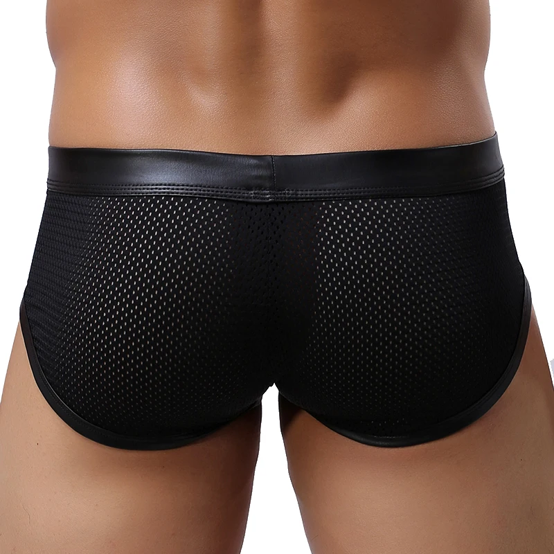 Для мужчин шорты-боксеры нижнее белье сетки из искусственной кожи сексуальное бикини Мужские Шорты для купания боксерские шорты для геев Клубная одежда трусики