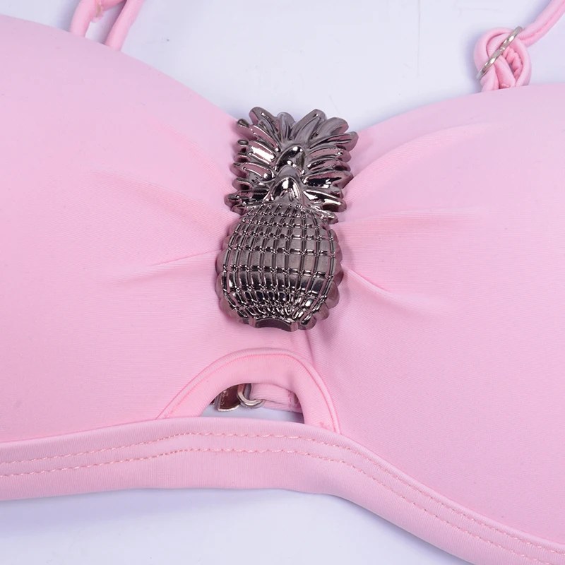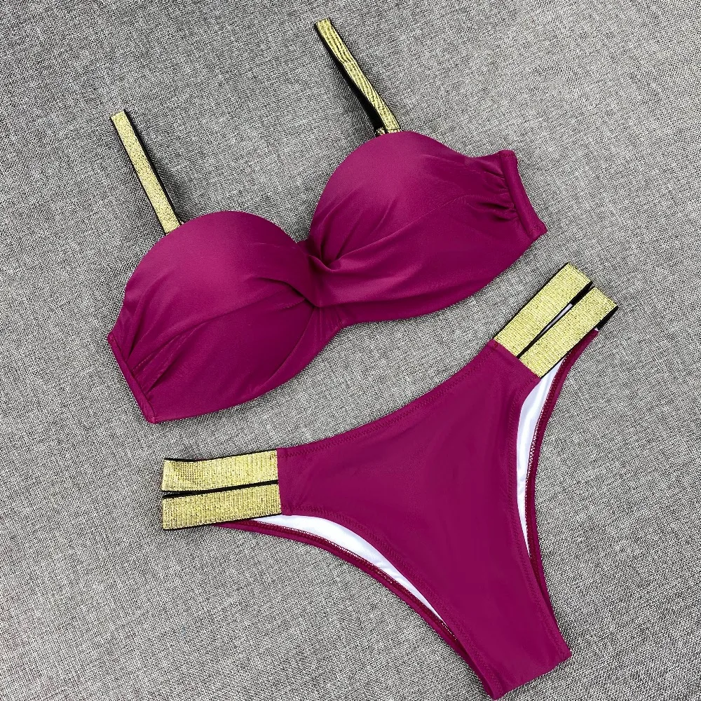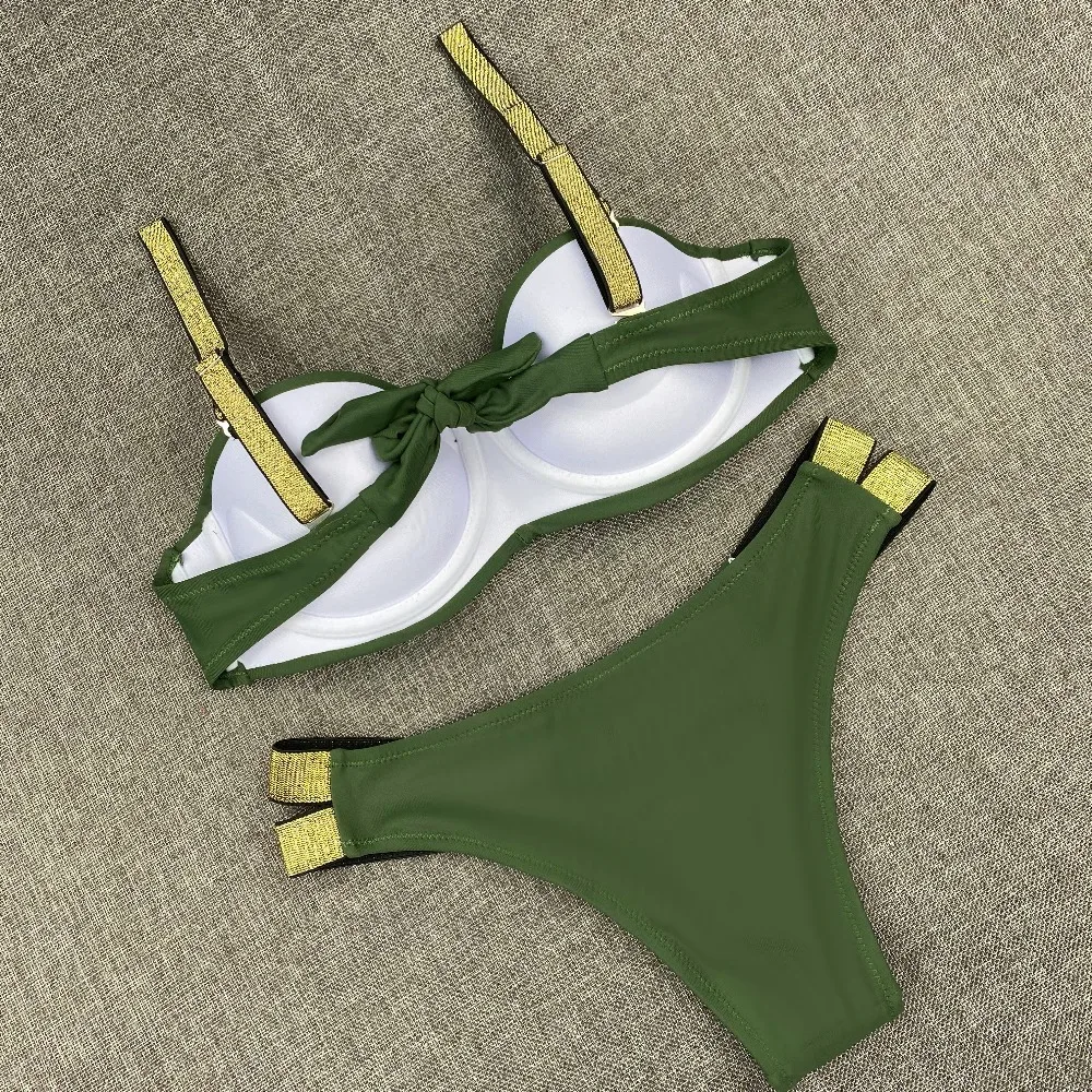 Купальник женский однотонный с лямкой через шею, пикантный бикини с чашками пуш-ап, купальный костюм из двух предметов, пляжный Летний Бикини, 2021