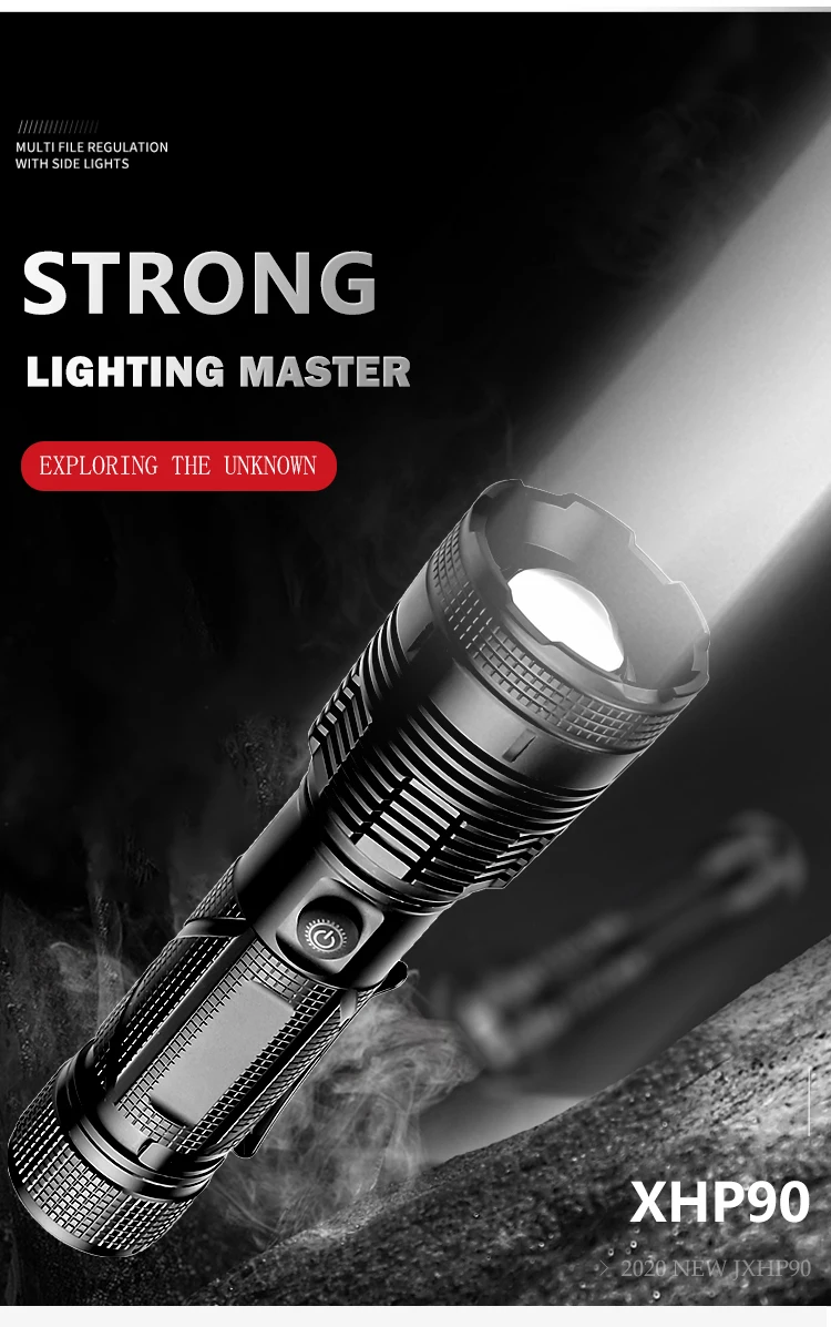 Светодиодный фонарик XHP90, масштабируемый фонарик, водонепроницаем...