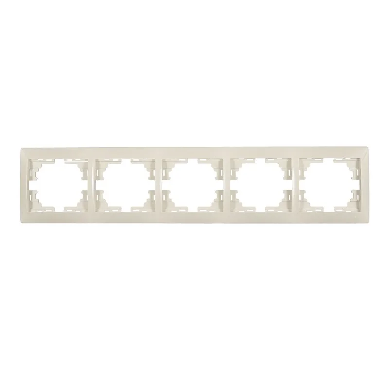 Пятиместная горизонтальная рамка Lezard Мира белая или кремовая – это рамка для выключателей, рассчитанная на 5 постов. Выполнена из белого или кремового поликарбоната, не склонного к поддержанию горения, в связи с чем рамка относится к наиболее безопасному электрооборудованию. Используется для объединения пяти электрических выходов (выключателей, розеток и т.д.) в визуально единый комплекс.