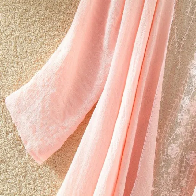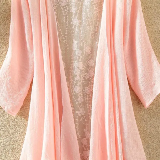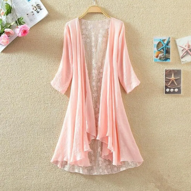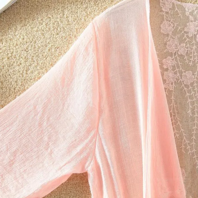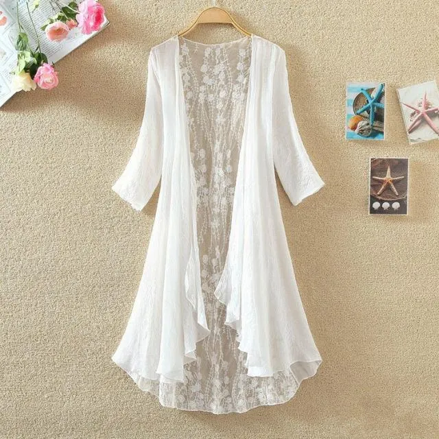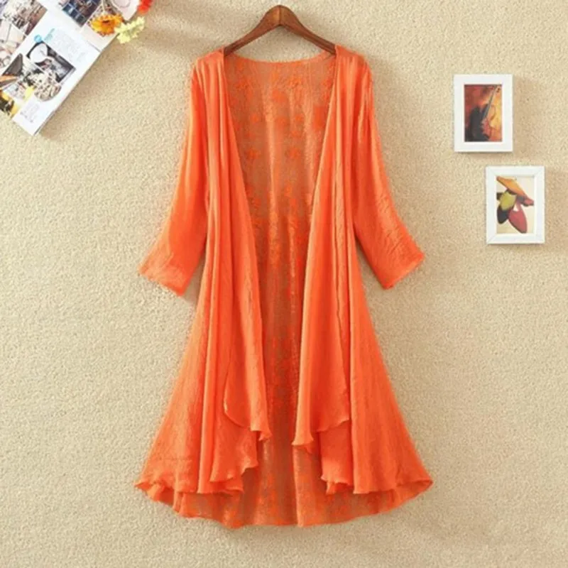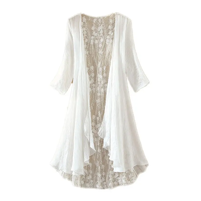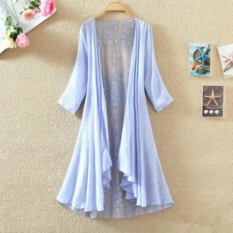 Женская длинная куртка, тонкая однотонная льняная куртка с кружевной строчкой, лето 2021
