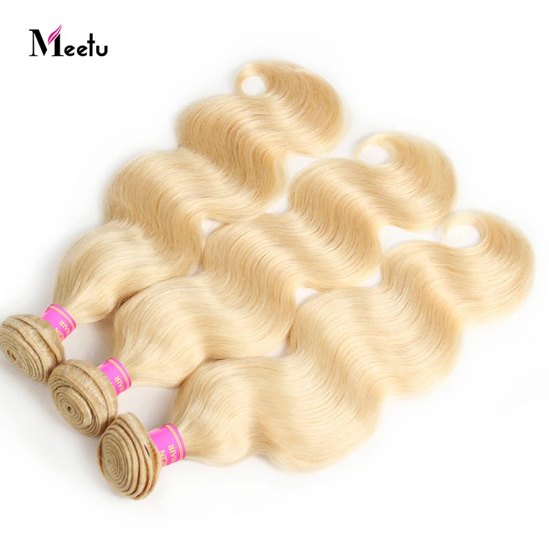 Meetu, блонд, волнистые волосы, пряди с закрытием, Remy 613 пряди с...