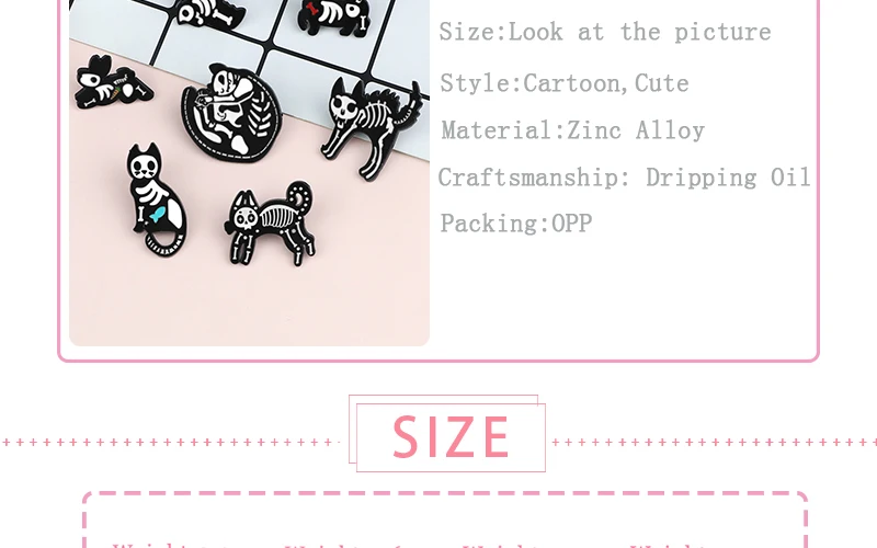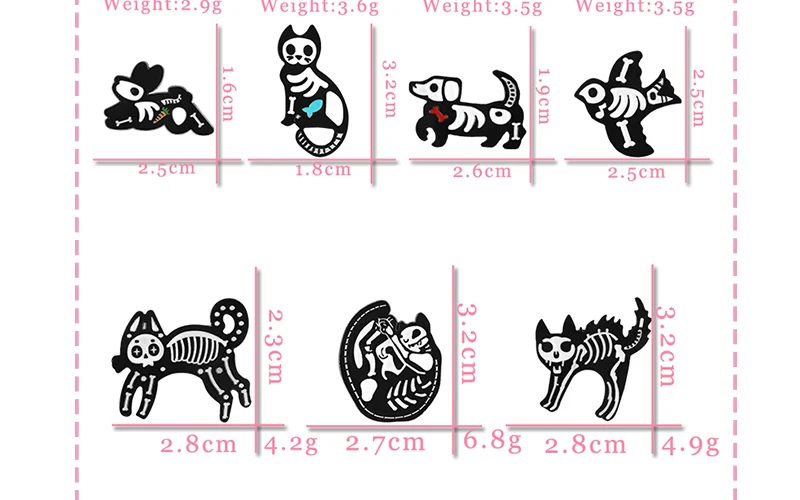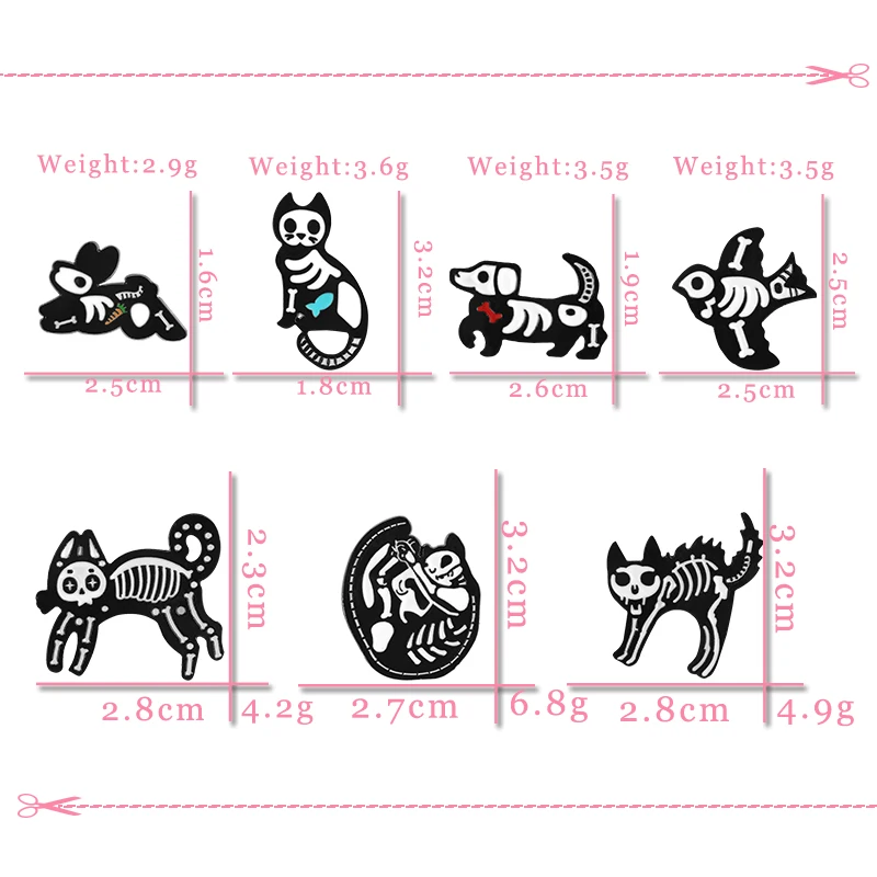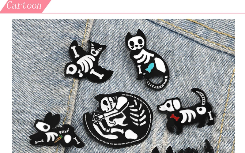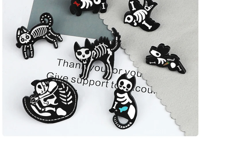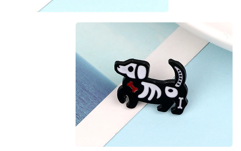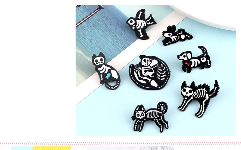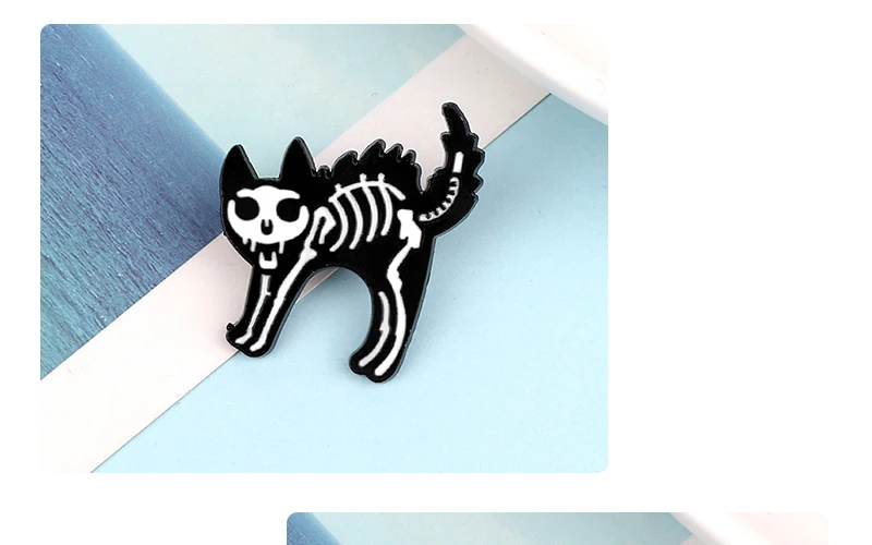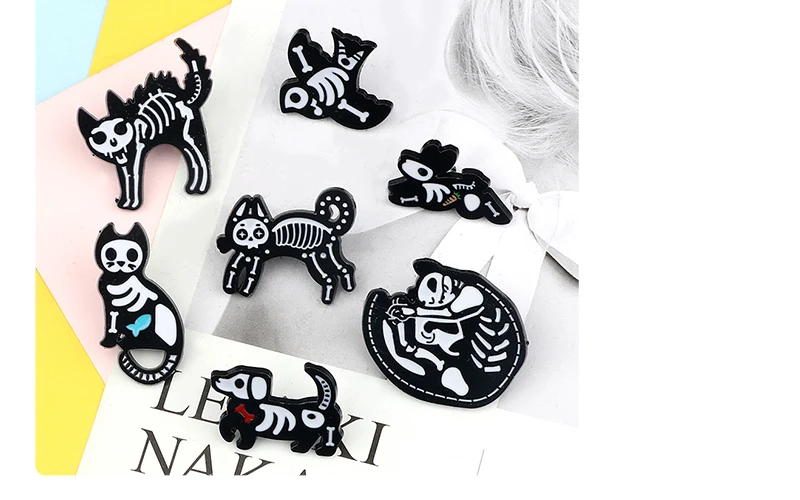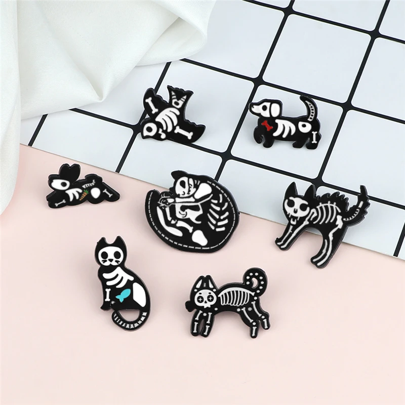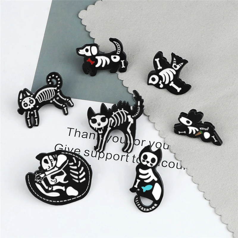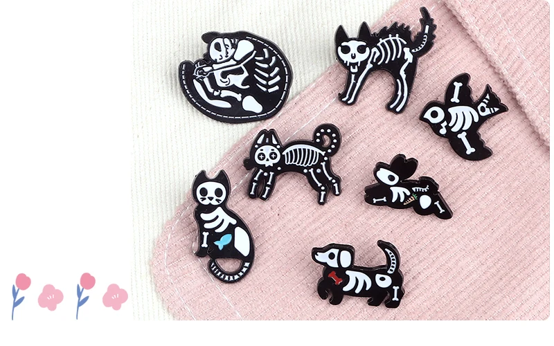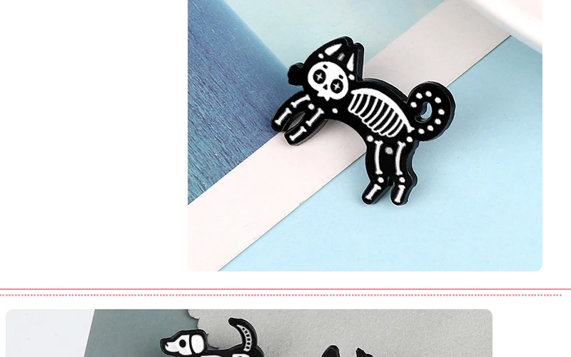 Брошь с эмалью, в виде кошки, собаки, черепа, черного, белого цвета