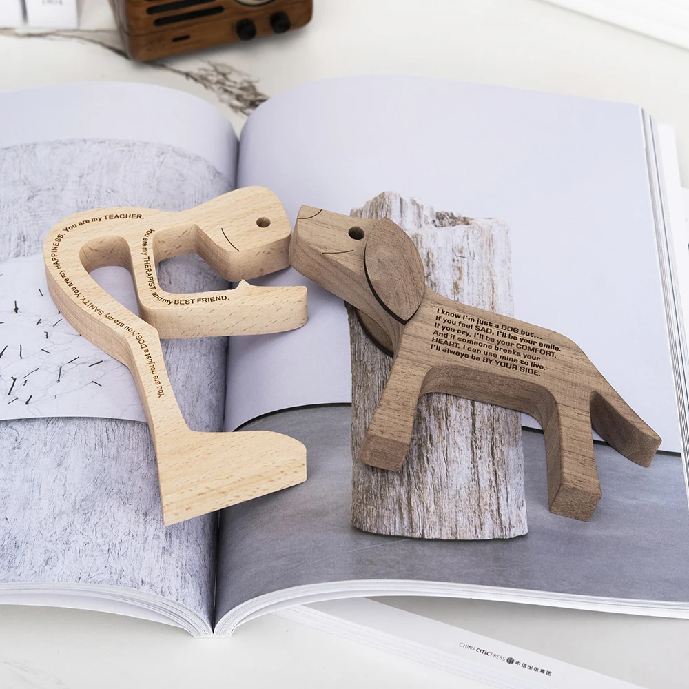 Гравировка на дереве поделки украшения настольный стол собака скульптурная фигурка настроить домашний офис украшение семья щенок памятные подарки Лидер продаж