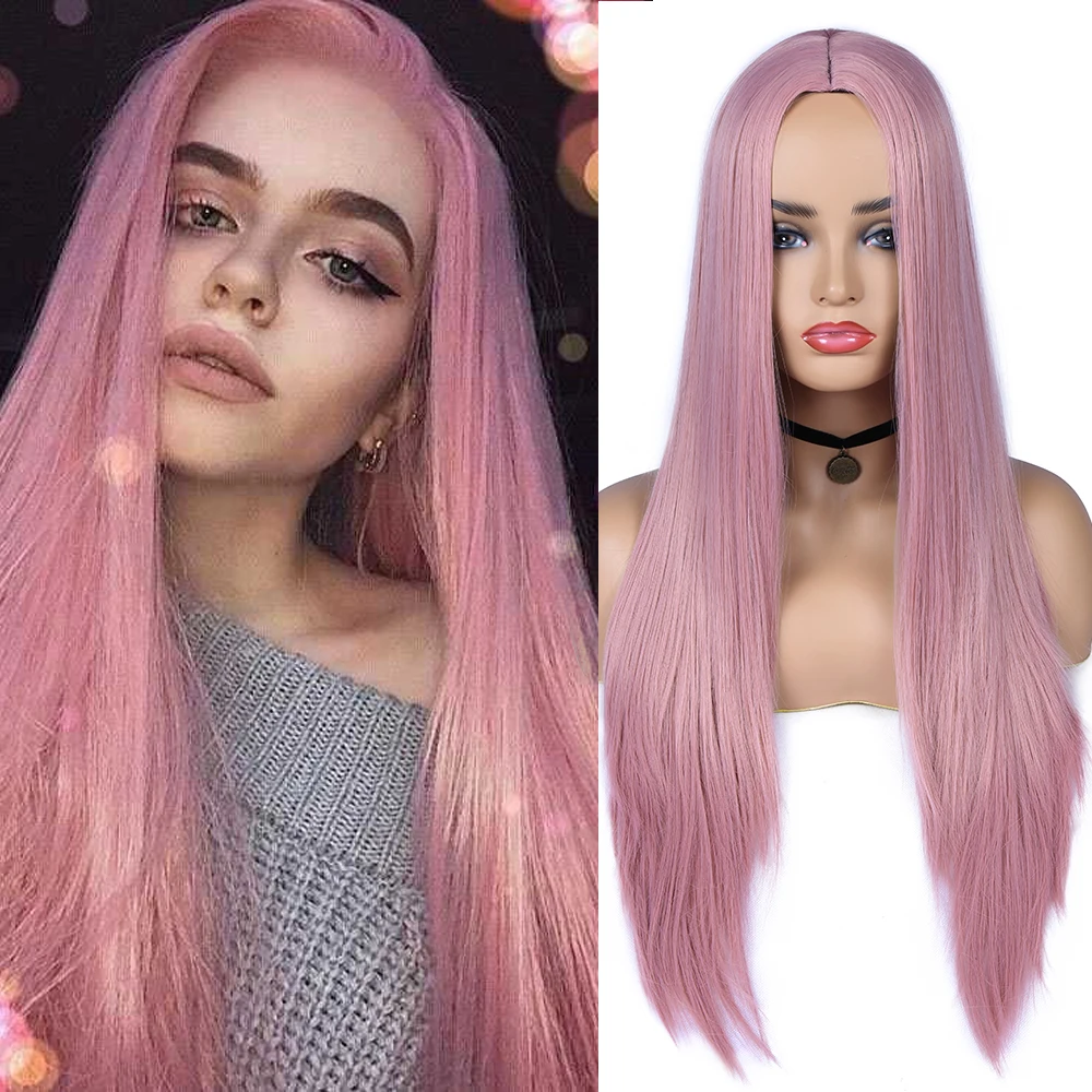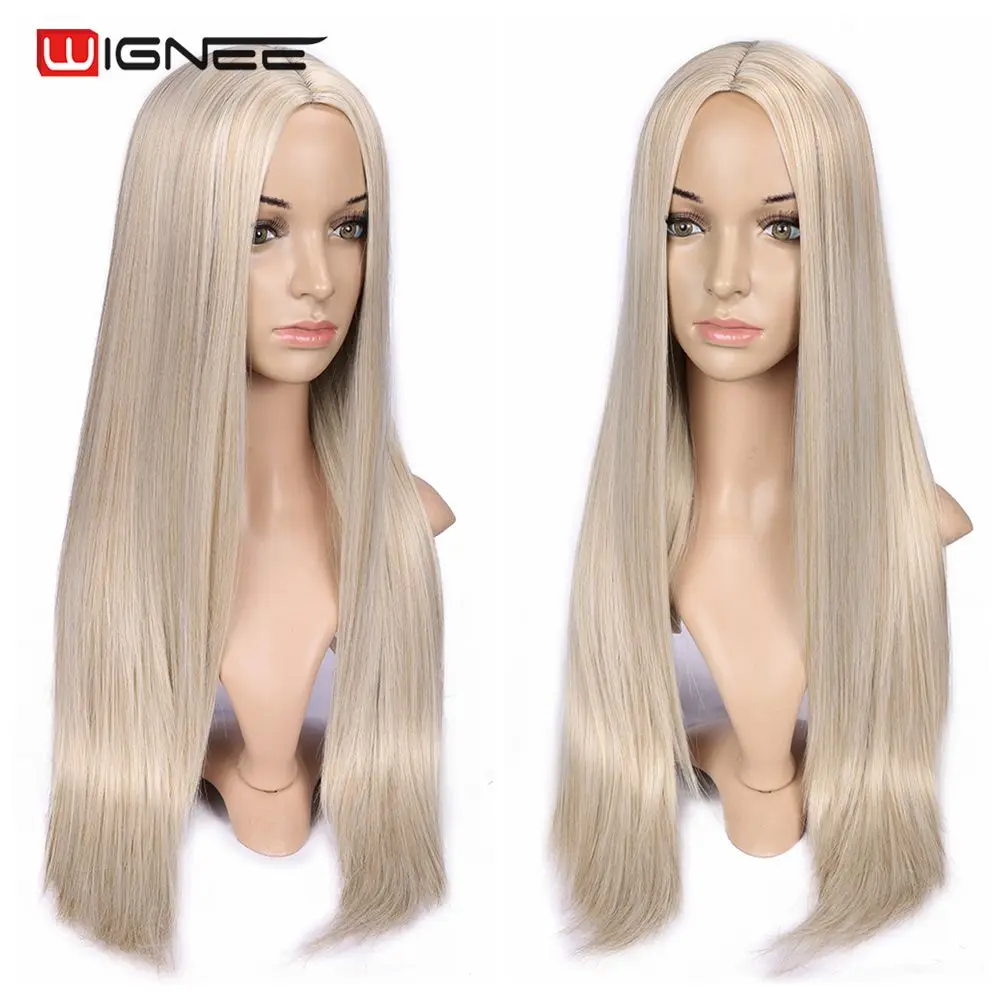 Парик Wignee для женщин, длинные натуральные прямые волосы блонд, средняя часть, косплей вечерние, Лолита, синтетические парики для женщин, Термостойкое волокно