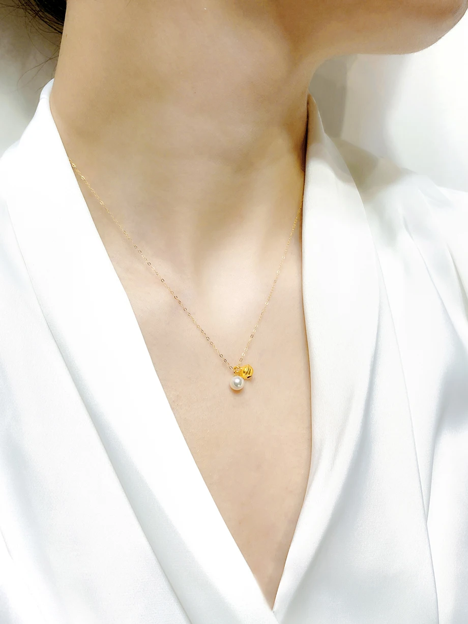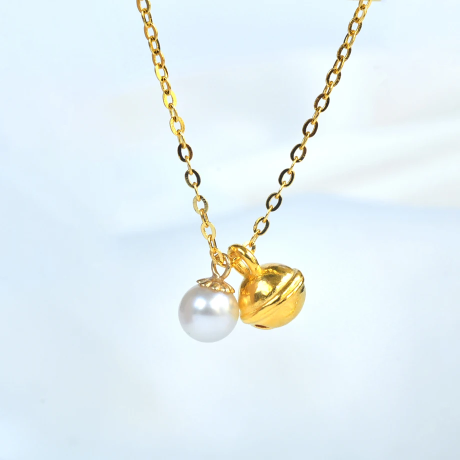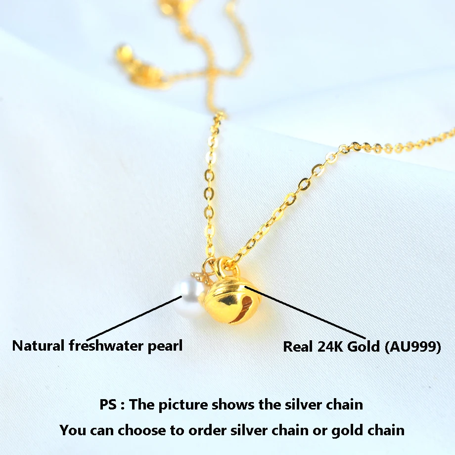 XF800 Настоящее 24 К 999 Золото прекрасное ювелирное ожерелье колокол и подвеска из натурального жемчуга чистый 18K AU750 цепи Свадебный подарок для женщин D573