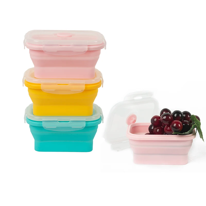 350 мл силиконовый Складная коробка для завтрака контейнер Bento BPA бесплатно Microwavable Портативный Пикник прямоугольная коробка