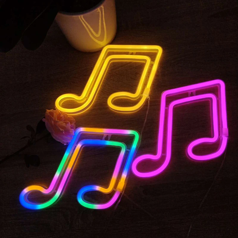 Светодиодный неоновый светильник с музыкальной нотой, ночной Светильник для концерта, настенная лампа для батарея спальня с питанием от USB, светильник для вечеринки