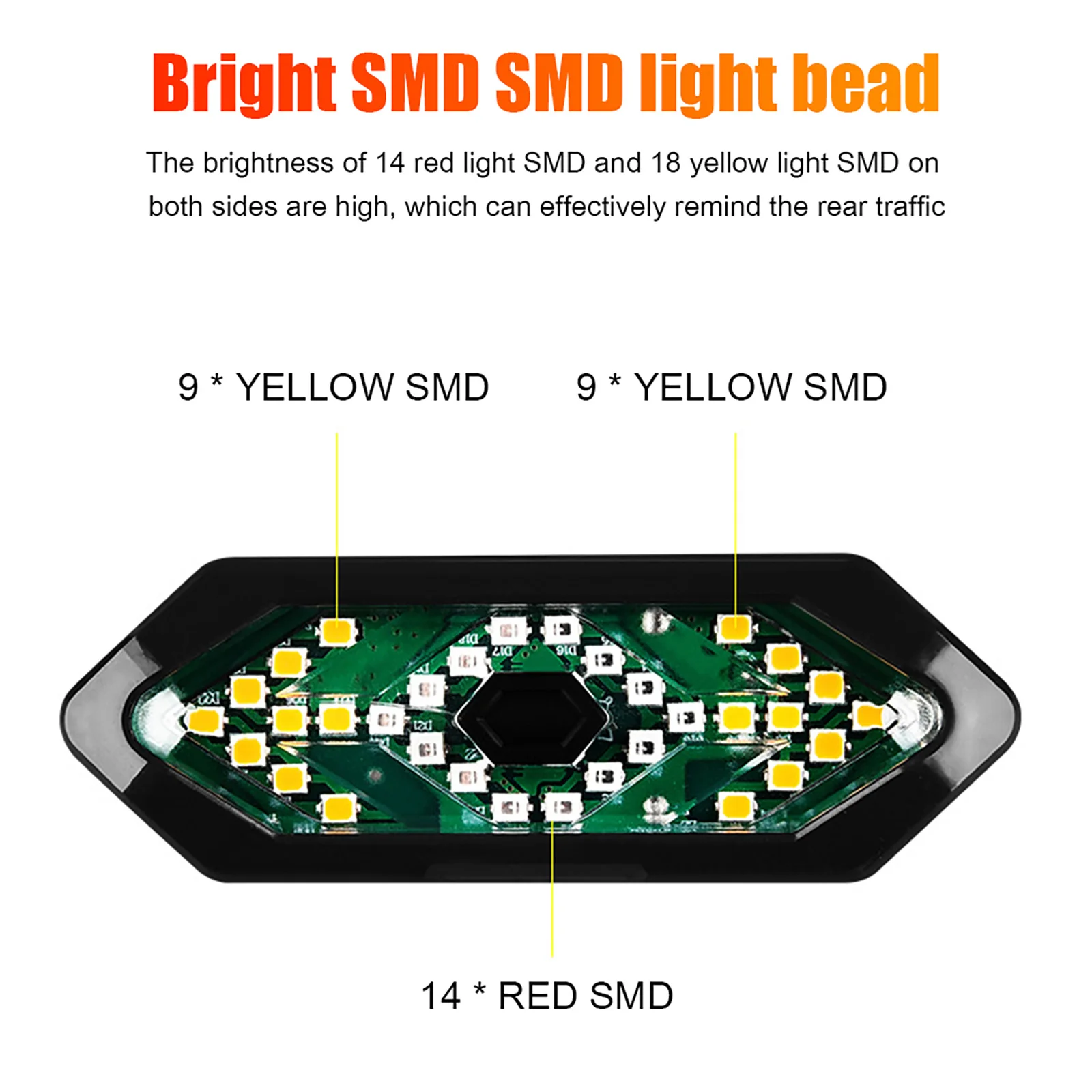 Умный велосипед хвост светильник, Водонепроницаемый безопасности сзади велосипеда вспышка светильник, USB Перезаряжаемые велосипедные аксессуары горный велосипед хвост светильник аварийные огни сигнальный светильник s с дистанционным Управление (черный)Характеристика:Высокая яркость 18 светодиодов может эффективно напоминать транспортные средства, проходящие позади.Высококачественный материал ABS, интеллектуальный пульт дистанционного управления, прост в эксплуатации.Пять режимов светильник, простой в использовании. Размер 94 мм * 33 мм * 26 мм.Громкий громкоговоритель, безопасное напоминание прохожим, Безопасная езда в ночное время.Usb-зарядка, водонепроницаемая, безопасная для использования даже в дождливые дни. Спецификация:Название: дистанционный задний светильник рулевого управленияМатериал: АБС-пластикЦвет: черныйРазмер изделия: 94x33x2 6 мм/3.7x1.3x1.02inВес нетто: 54 гВес брутто: 54 гТип лампы: светодиодныйЕмкость аккумулятора: 900 мАч литиевая батареяСветильник Цвет: красный светильник, сигнал поворота желтый светильникВремя зарядки: 3 часаВремя разряда: 36 часовНапряжение: 3,7 VПять режимов освещения:Красный светильник всегда включенЛевый Сигнал поворота + высокий децибел РогМигающий красныйПравый Сигнал поворота + высокодецибел РогВспышка все Примечание:В связи с различиями мониторов и эффектами освещения реальный цвет товара может немного отличаться от цвета на фотографиях. Спасибо!Обратите внимание, что допускается отклонение в диапазоне 1–3 см из-за проведения замеров вручную.