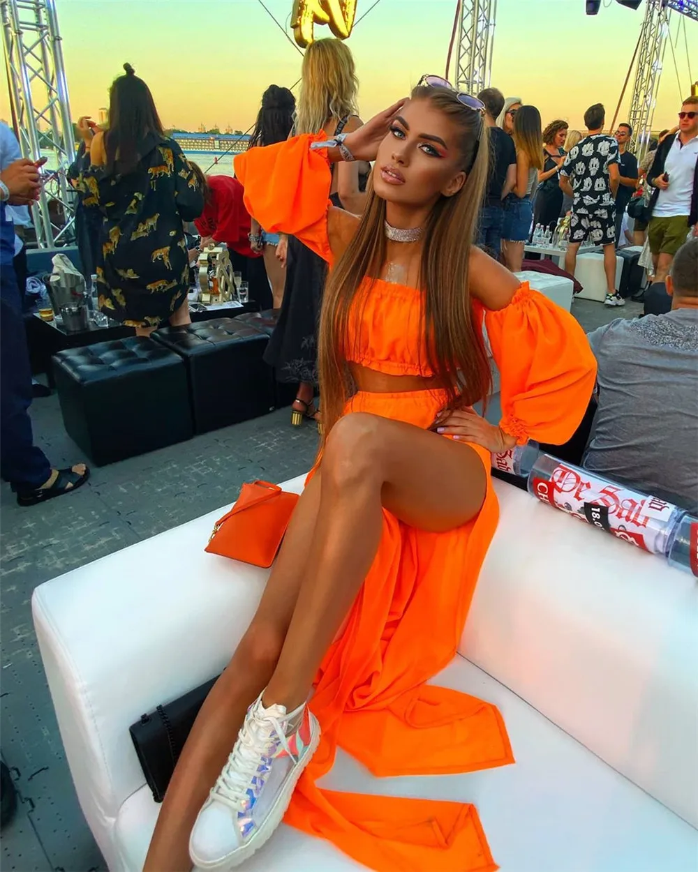 Комплект женской одежды, топ с открытыми плечами и длинным рукавом и прикрывающая юбка, костюм из двух предметов для путешествий, пляжного отдыха