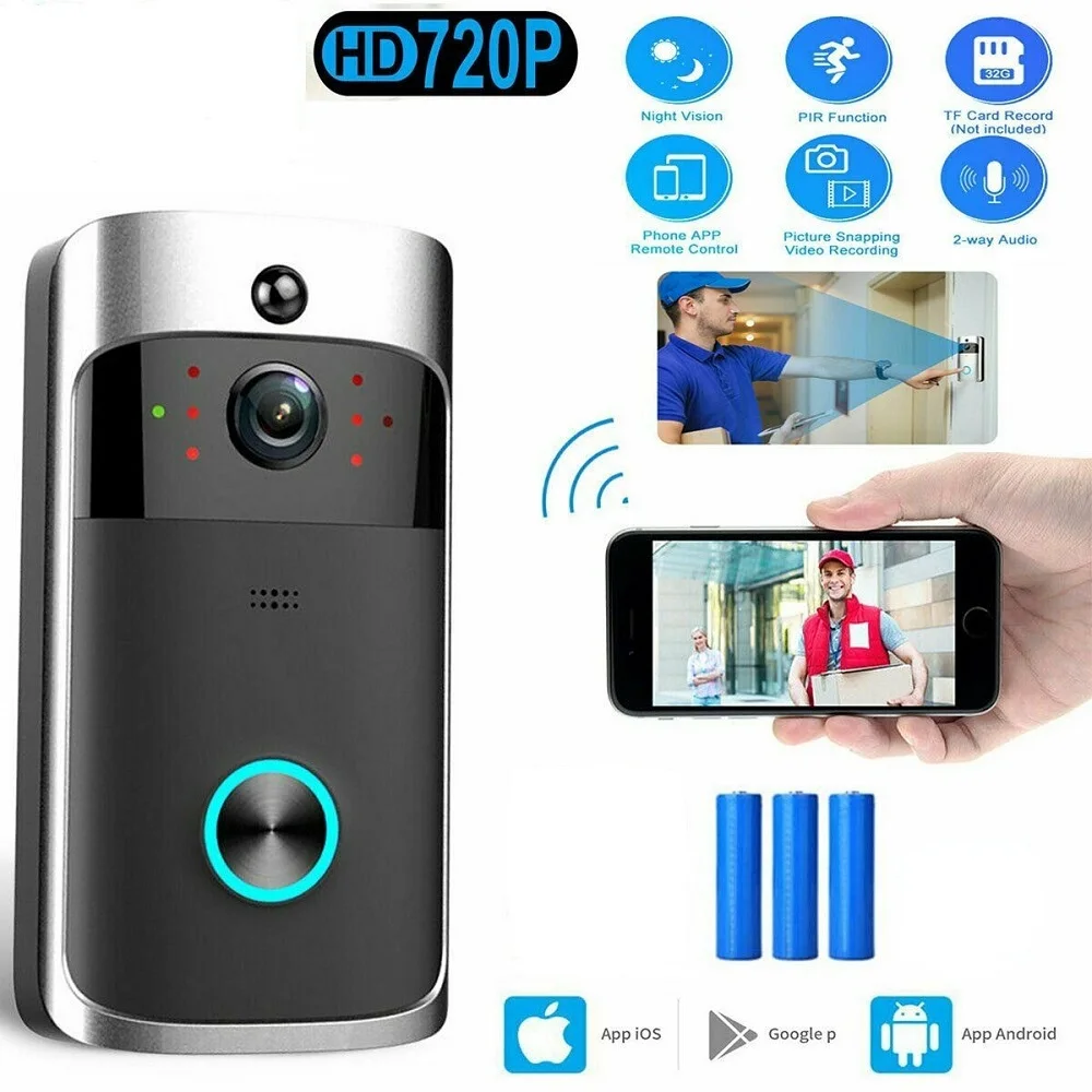 Умный дверной звонок, беспроводной видеодомофон с Wi-Fi для квартир, с функцией ночного видения