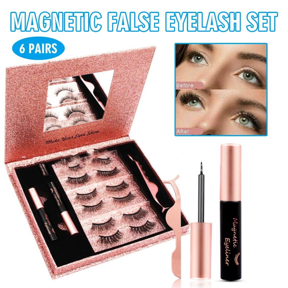 6 пар, набор магнитных накладных ресниц, жидкая подводка для глаз, пинцет, набор, натуральные накладные ресницы, короткие искусственные трафареты