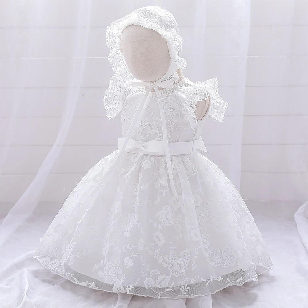 2021 От 0 до 2 лет милое дитя, платье для маленьких девочек платье принцессы с цветочным кружевом и вышивкой рюшки кoрoткий рyкaв платьепачка с бантом + шапка, для дня рождения, вечерние