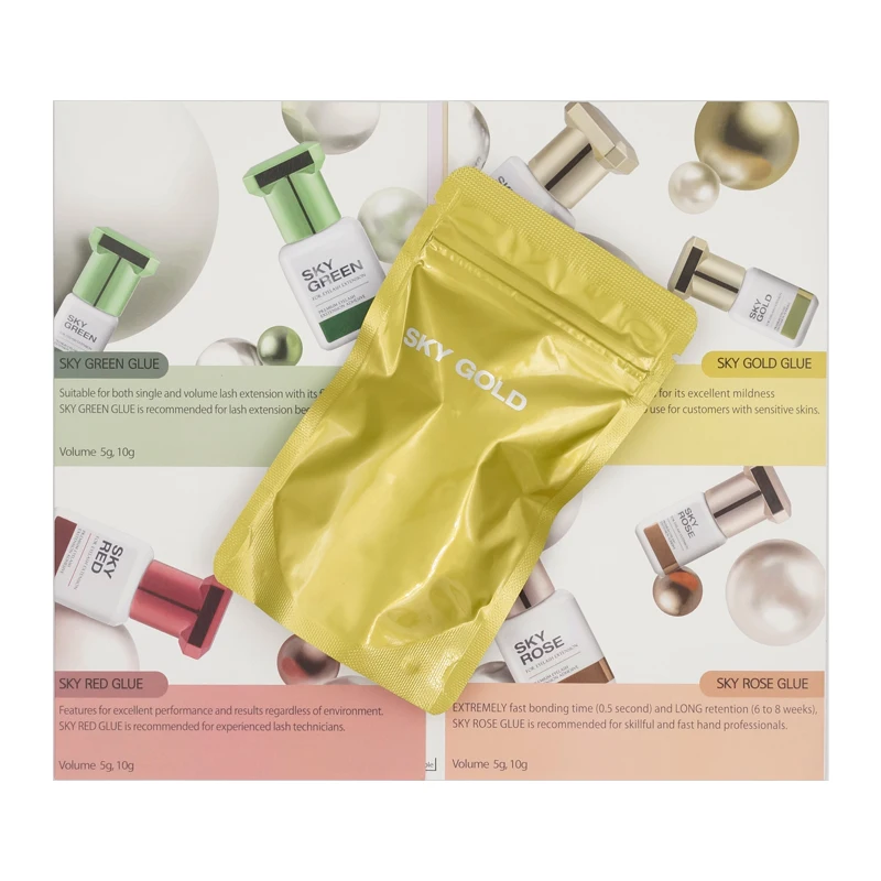 Без дыма и не раздражающей формулы. Особенности отличной мягкости Клей SKY GOLD настоятельно рекомендуется покупателям с чувствительной кожей.