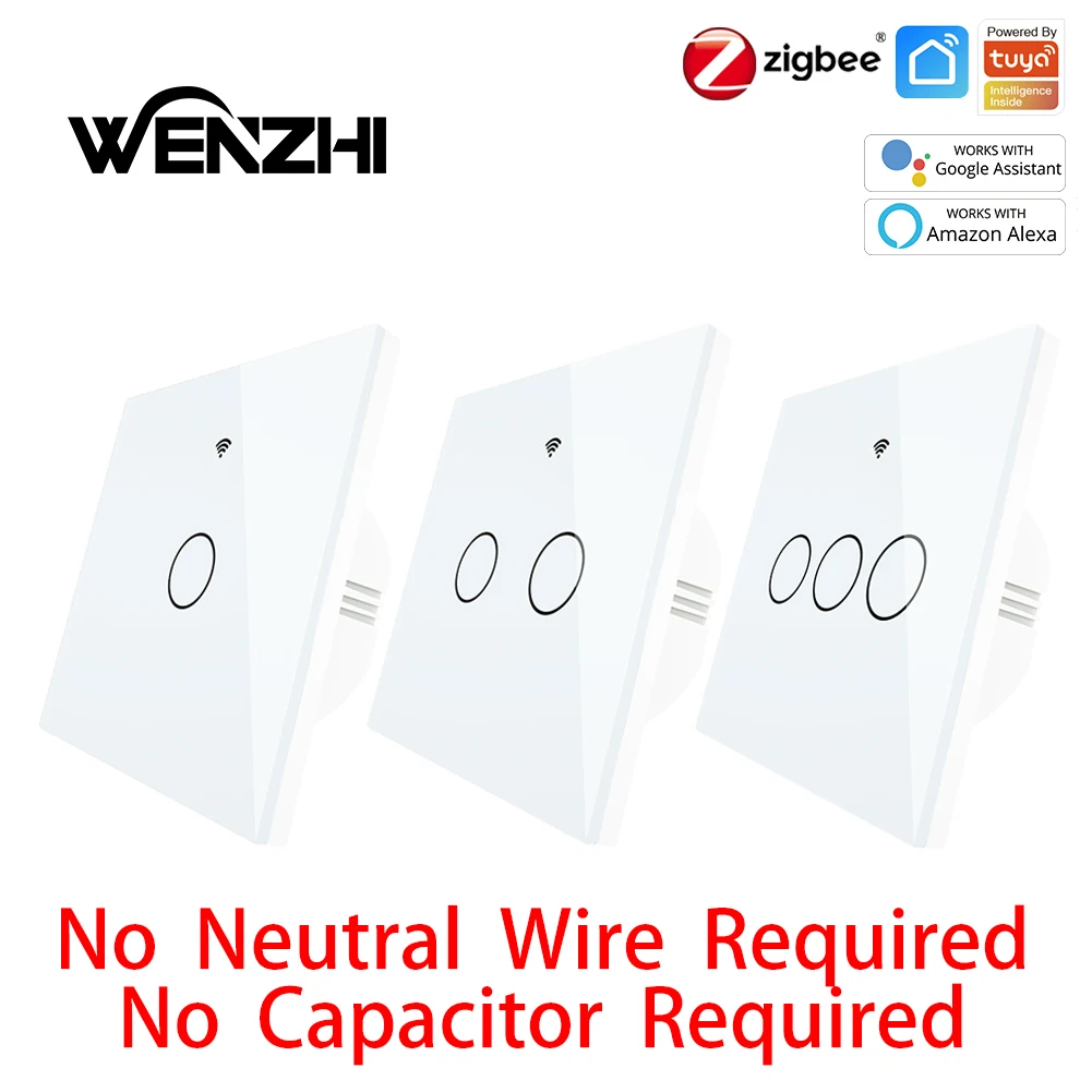 Настенный белый сенсорный светильник ель света ZigBee EU, не требует нейтрального конденсатора, работает с Alexa Google Home на 1, 2, 3 клавиши