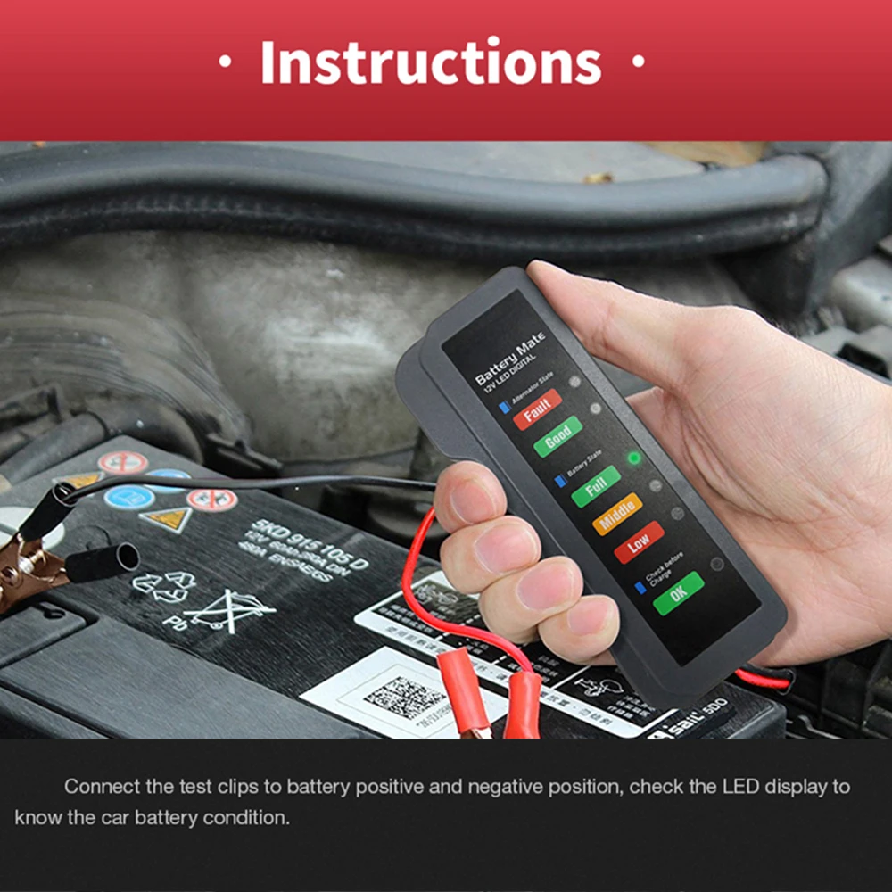 Мини-тестер автомобильного аккумулятора, 12 В, цифровой тестер генератора с 6 светодиодный ными индикаторами, диагностический инструмент для автомобиля, тестер автомобильного аккумулятора