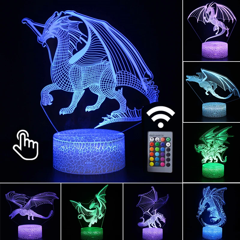 Ночник 3D с иллюзией дракона, светодиодный настольный ночник с дист...