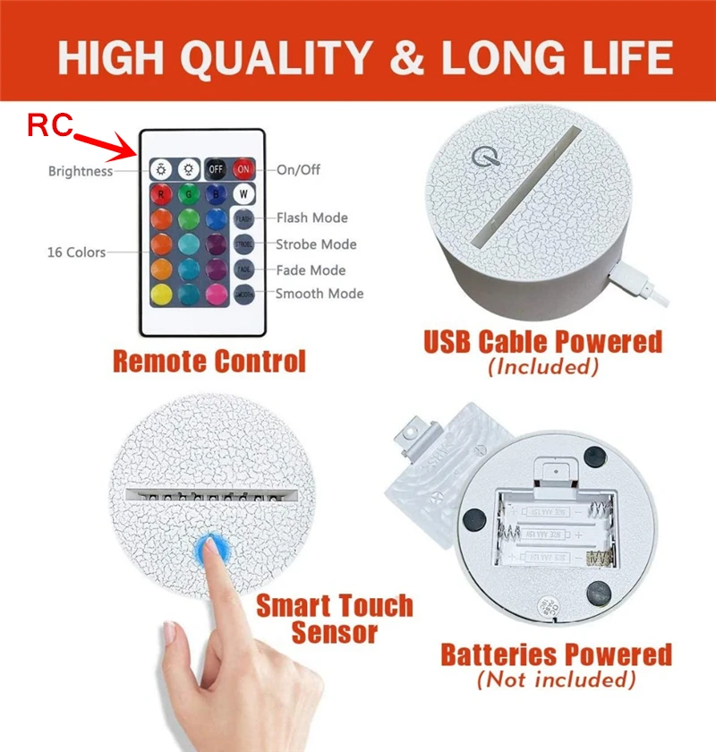 3D иллюзионная лампа, ночники для дома и комнаты, сенсорные Базовые...