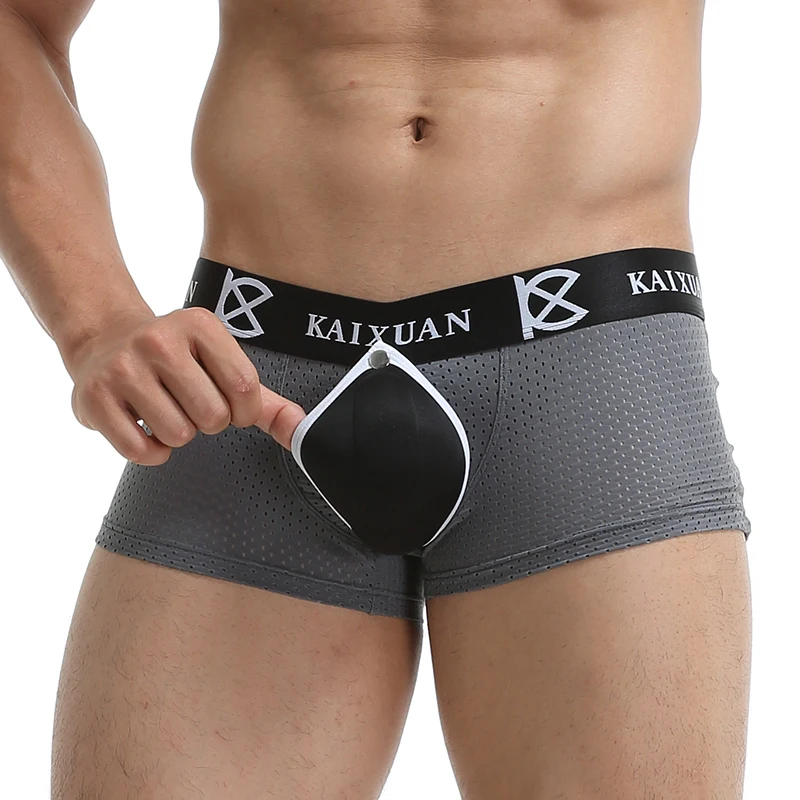 Нижнее белье, мужские трусы-боксеры, дышащая сетка, сексуальные бок...