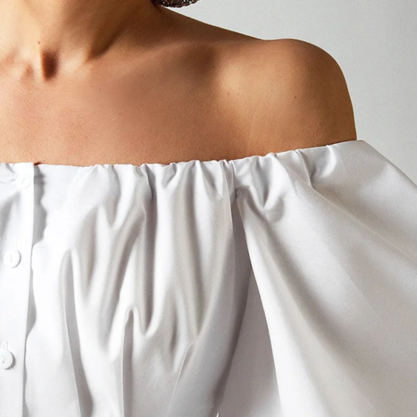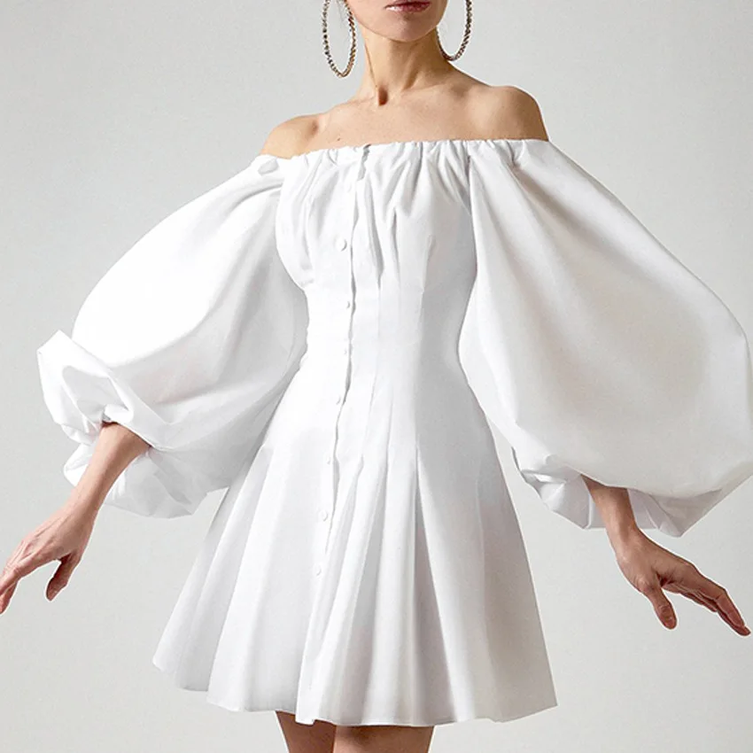 XUXI женское платье на одной пуговице, белое платье с круглым вырезом и длинным рукавом, Сексуальная Блузка в стиле ретро, лето 2021 E842