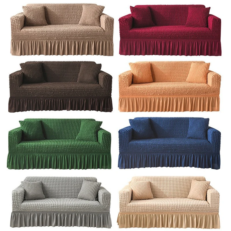 Однотонный эластичный чехол для дивана с юбкой из полиэстера для гостиной, эластичные чехлы на чехол для секционного дивана, 1/2/3/4 мест