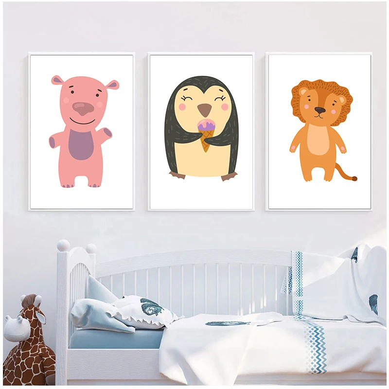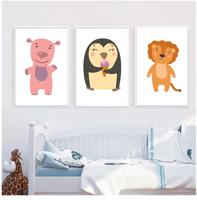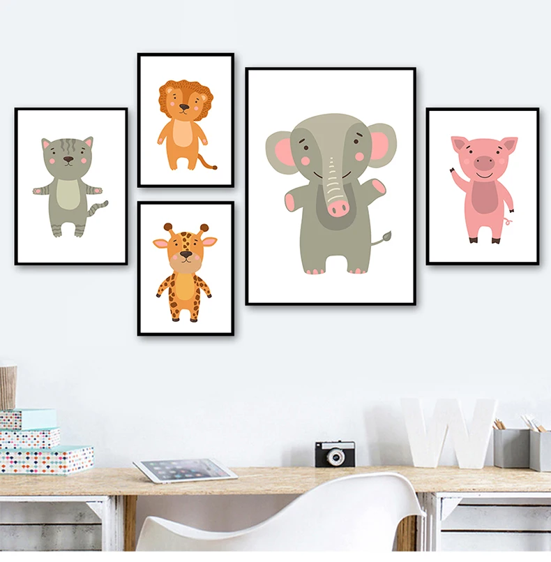 Мультфильм Животные Скандинавская Картина на холсте льва, слона, пл...