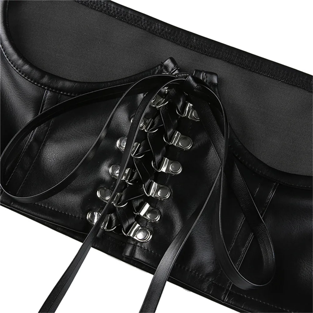 Корсет женский из искусственной кожи, на шнуровке, черный