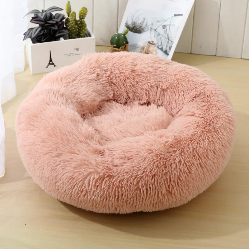 Мягкая кровать для собак круглая моющаяся длинная плюшевая питомник...