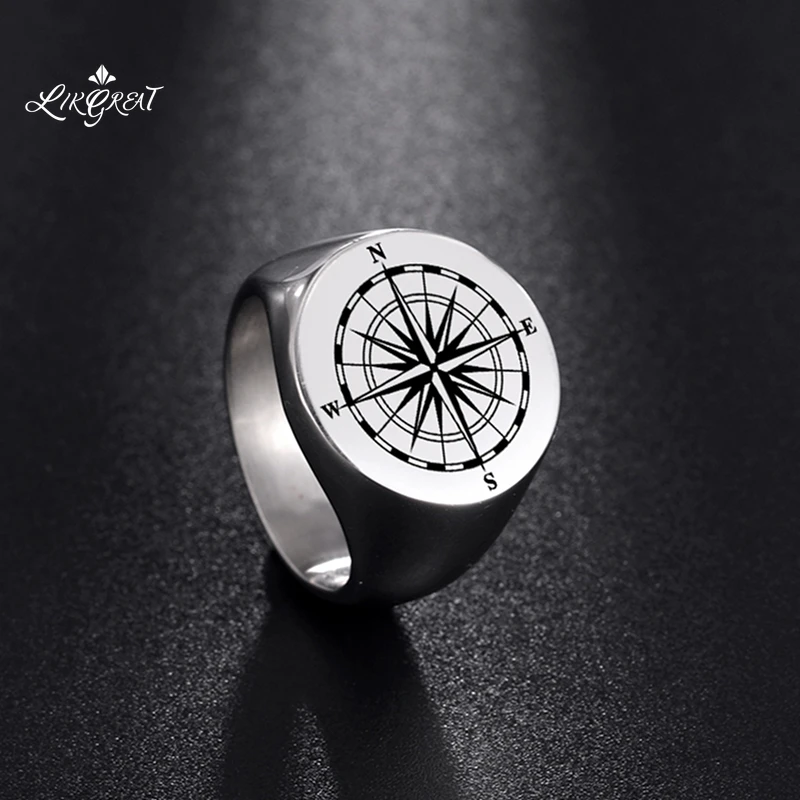 Готическое кольцо LIKGREAT с компасом викингов для мужчин, кольца из нержавеющей стали в стиле панк для самозащиты, Кольцо большого размера в байкерском стиле, мужское ювелирное изделие в стиле бойфренда