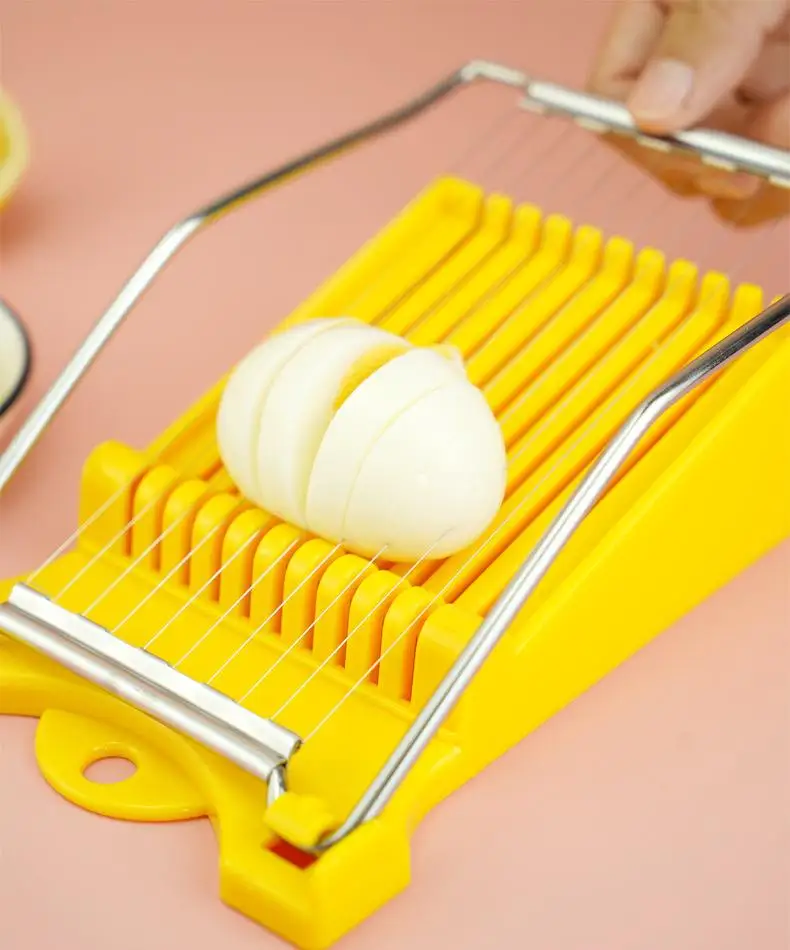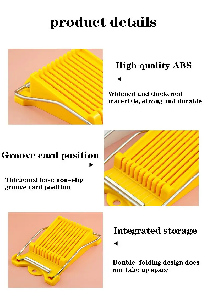 Резак может резать ломтики пищи без режущих инструментов, а расстояние между стальными проводами является равномерным.