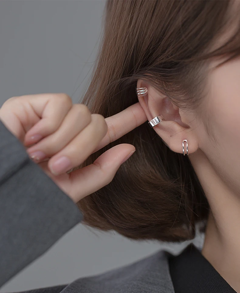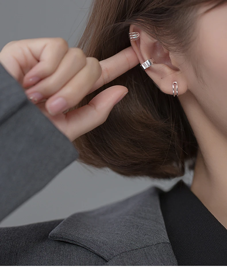 MloveAcc 925 пробы серебро 23 слоя гладкая поверхность Кафф серьги-клипсы для Для женщин без пирсинг ювелирные изделия